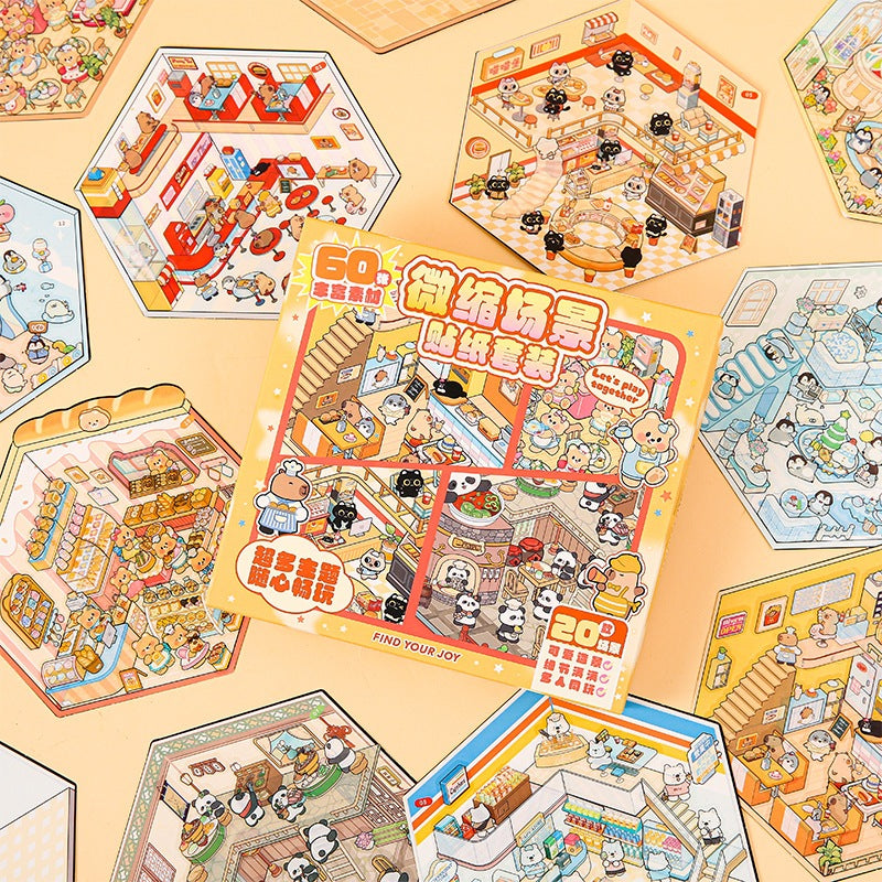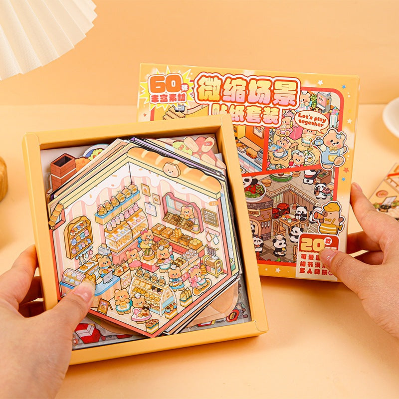 Design your own miniature worlds with 3D DIY sticker scenes featuring four diverse themes—bookstore, café, restaurant, and supermarket. Arrange your creations from far to near or bottom to top for a dynamic and personalized display. This kit, complete with tweezers for stickers, ensures precision and ease for every DIY enthusiast.