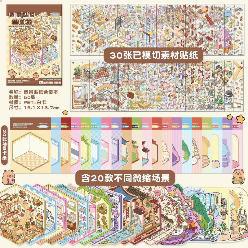 Create endless tiny worlds with the Micro Scene Builder Sticker Book Series! This set includes two editions — Version 1.0 and Version 2.0 — each packed with detailed cut-material sticker sheets and beautifully illustrated micro scene bases. Designed for hobby lovers, journaling fans, scrapbookers and anyone who enjoys relaxing creative play, this book offers soothing stress relief and a fun, immersive crafting experience.
