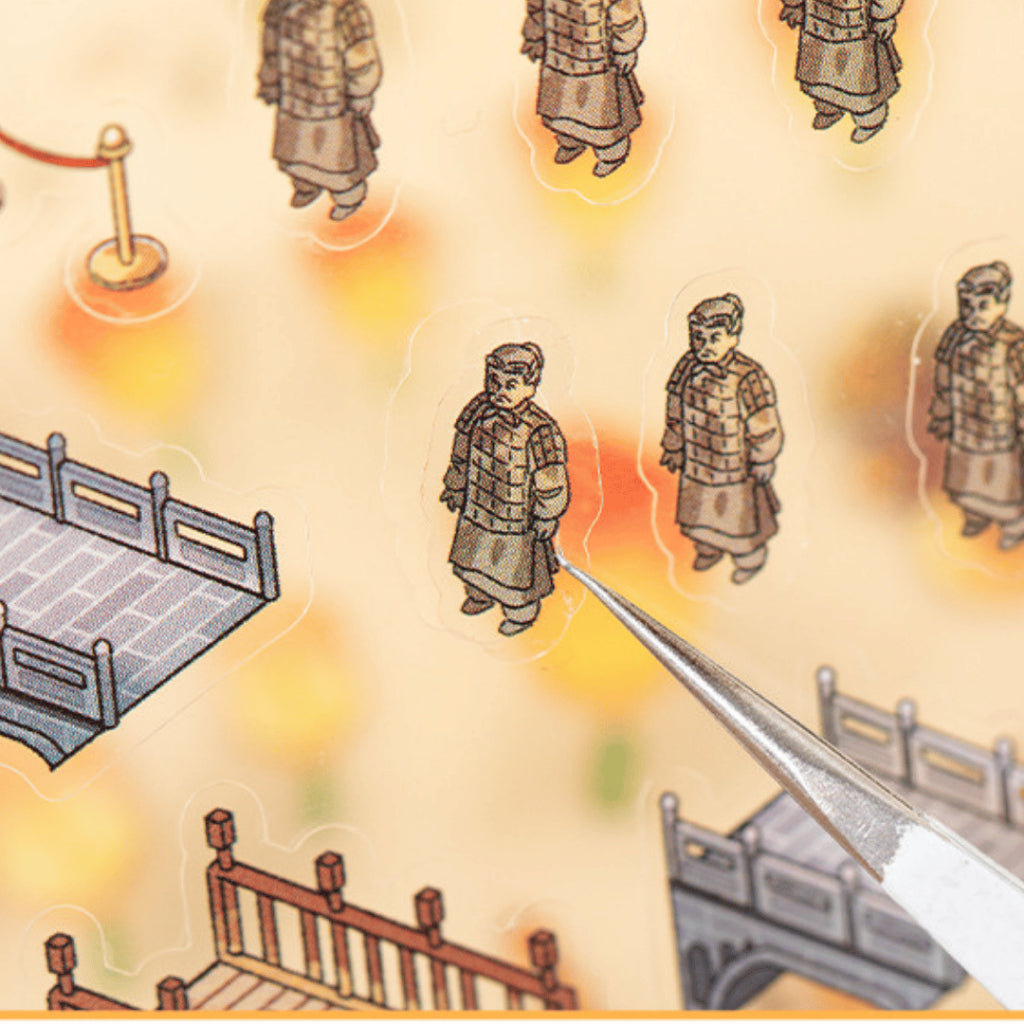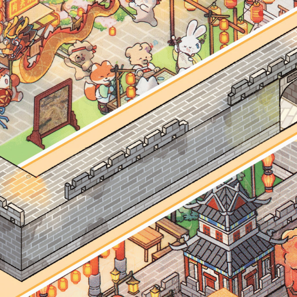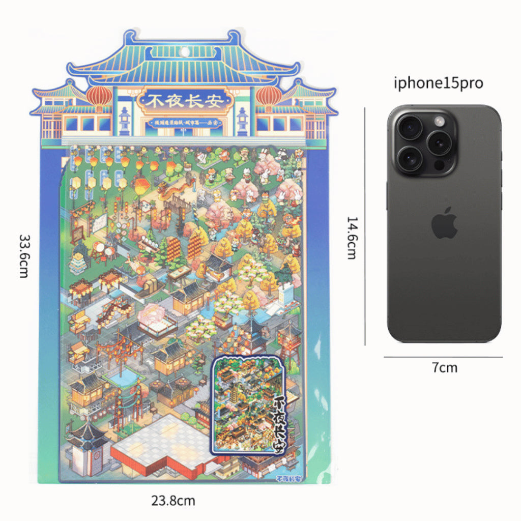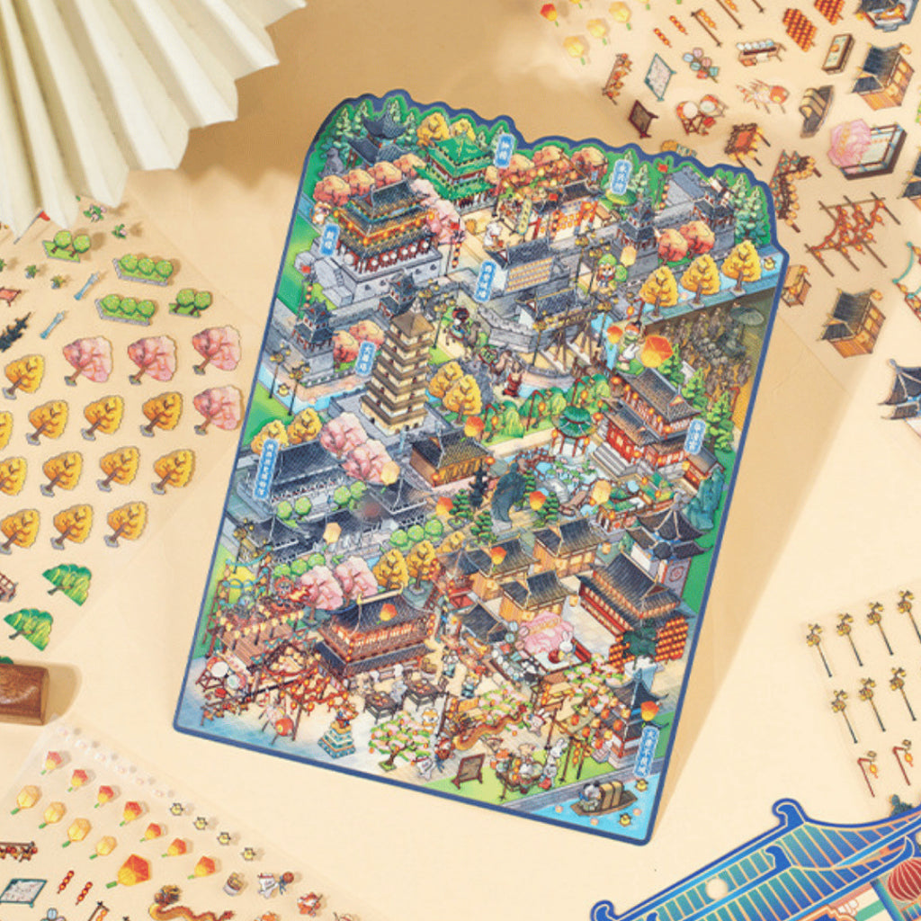 Step into the glowing night streets of ancient Chang’an with the Nightfall Chang’an Scene Sticker Set! This beautifully illustrated scene builder features lantern alleys, traditional architecture, river bridges, stone roads, pine trees, pavilions and festival decorations — everything you need to recreate a lively, magical night-market atmosphere.