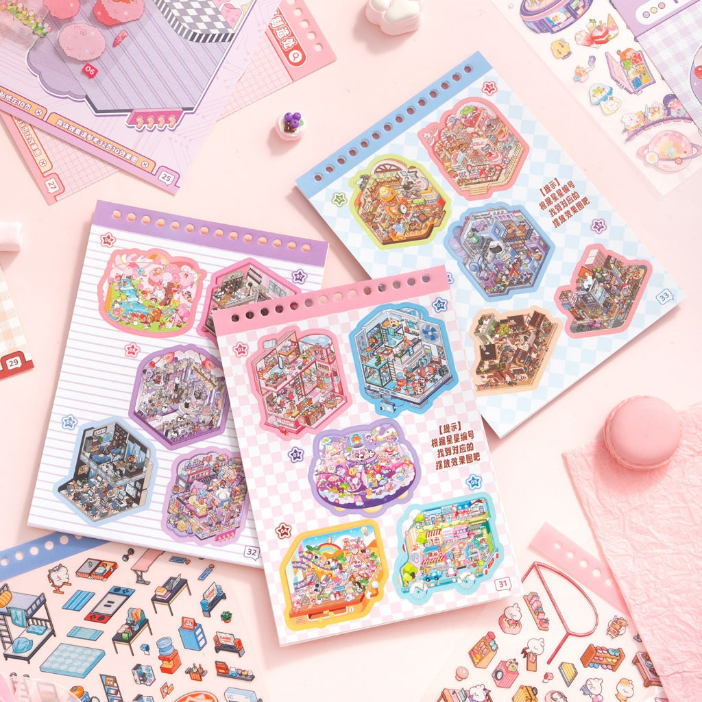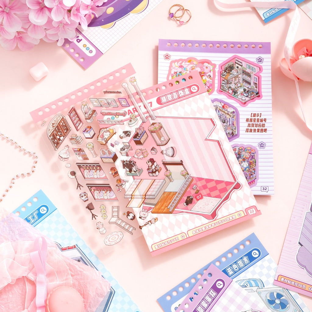 From romantic bedrooms and vintage reading rooms to music corners and cafés — each scene brings storybook vibes into your journal or gift box.