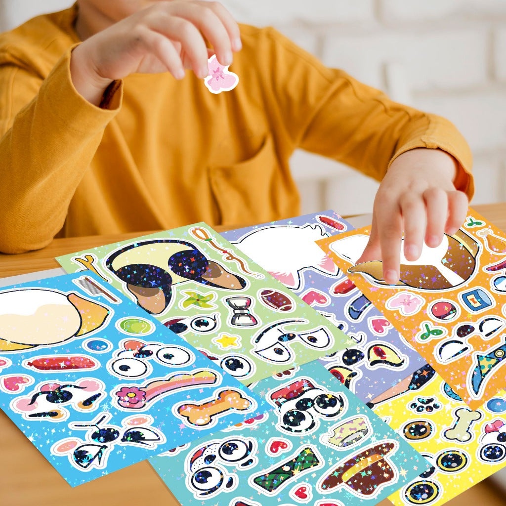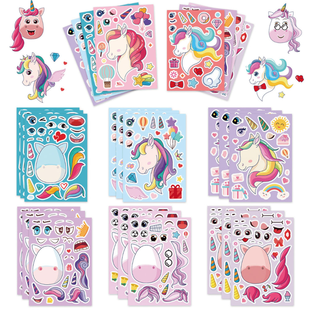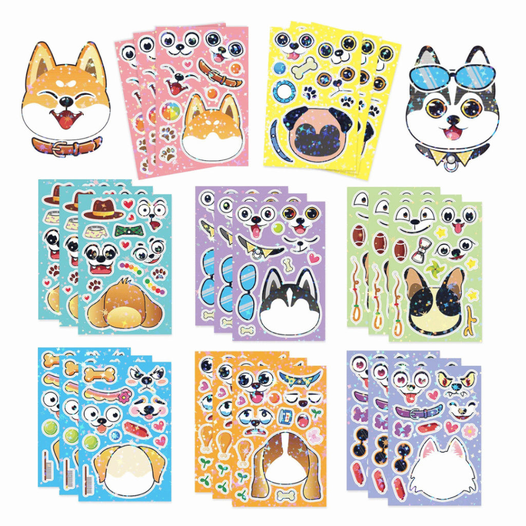 Say hello to the Change-A-Face Series – Animals, where kids can transform adorable animal characters any way they like. This 8-sheet Animal Cuteness pack lets children mix & match eyes, mouths, hats, props, and expressions to create endless funny faces.