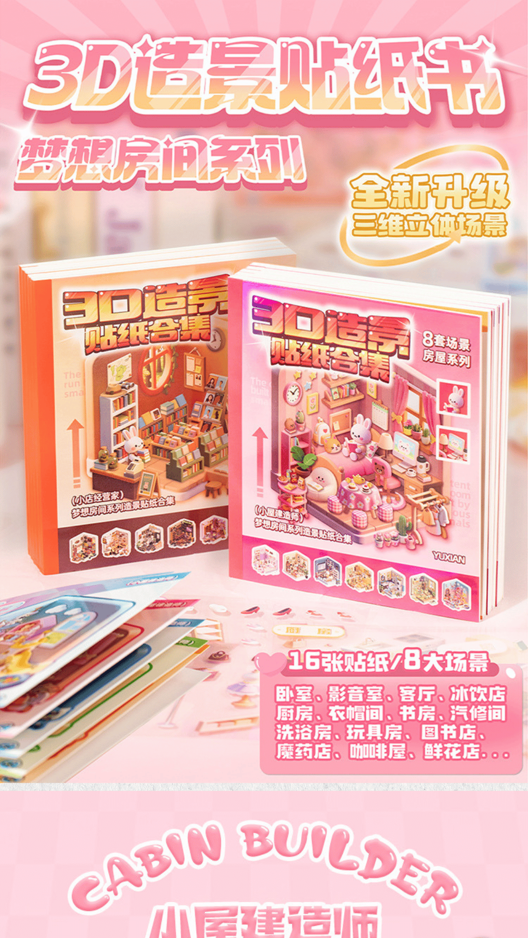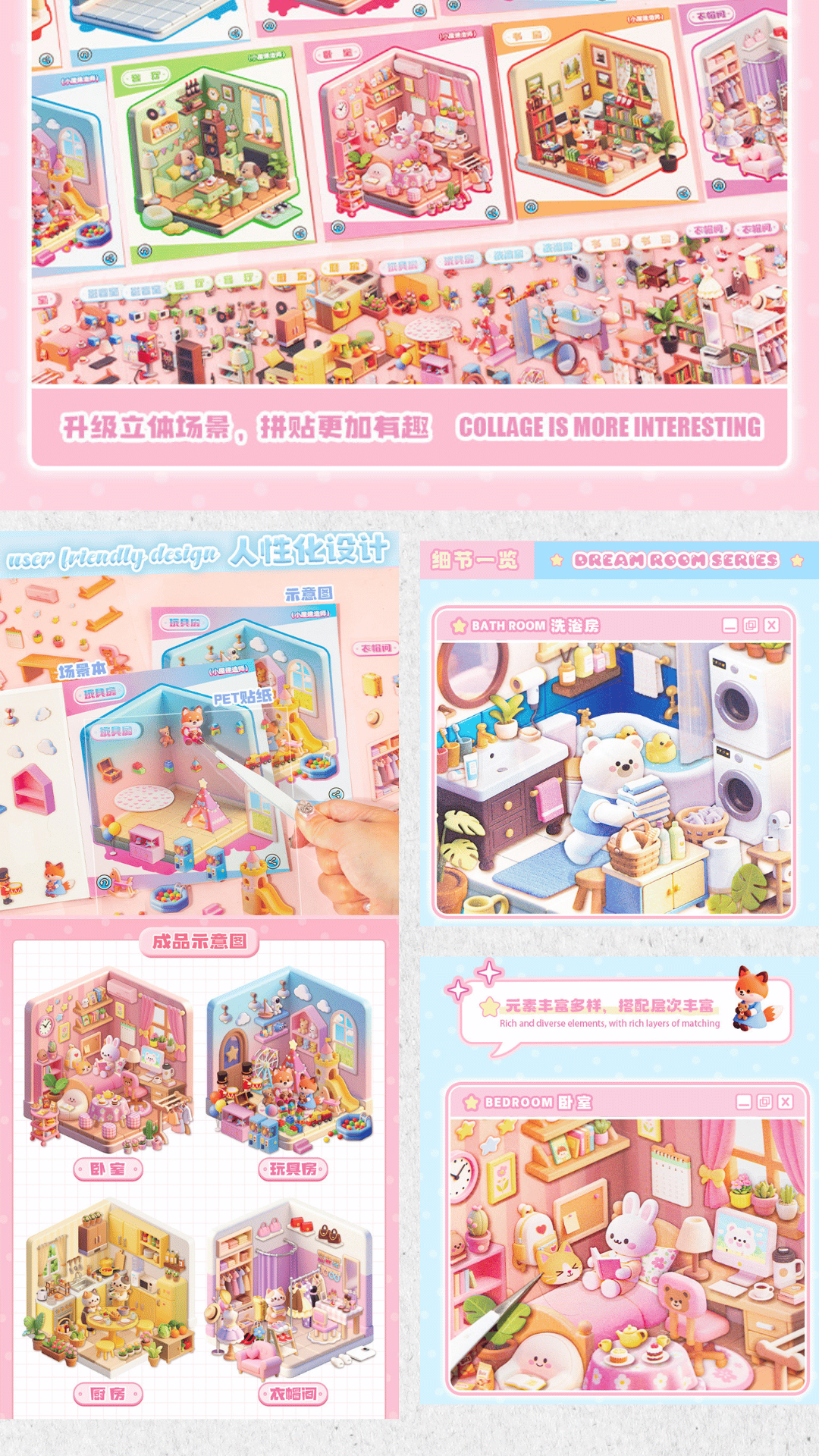 Build your happy place — one adorable room at a time! Our Cabin Builder 3D Sticker Book Series (HB 0048–0049) invites you to create dreamy mini interiors using vivid, layered stickers across 8 creative room scenes.