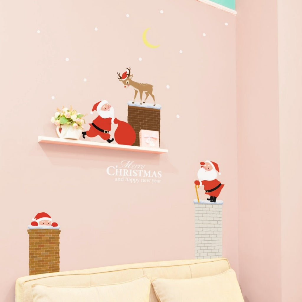 Christmas Santa Chimney Gift Delivery Christmas Wall Sticker Removable, Christmas Wall Decorations Christmas Wall Decora