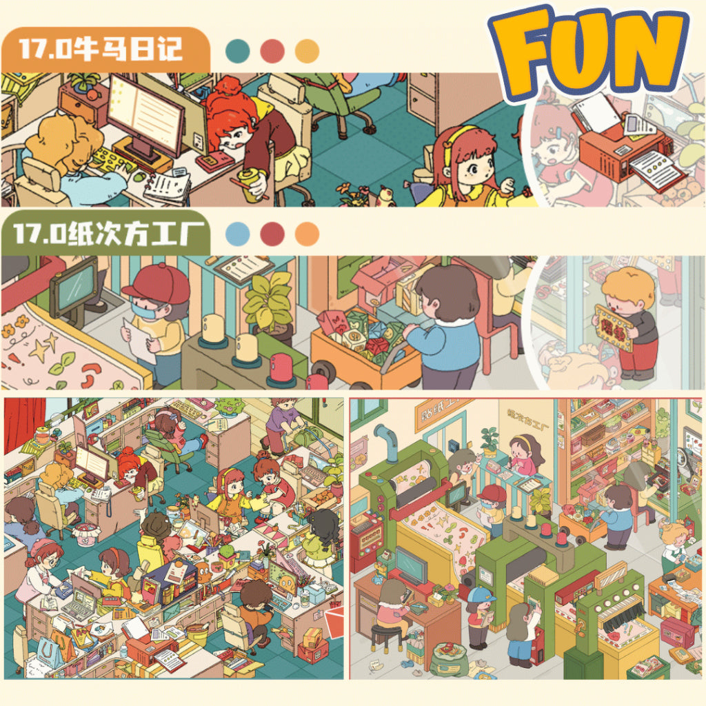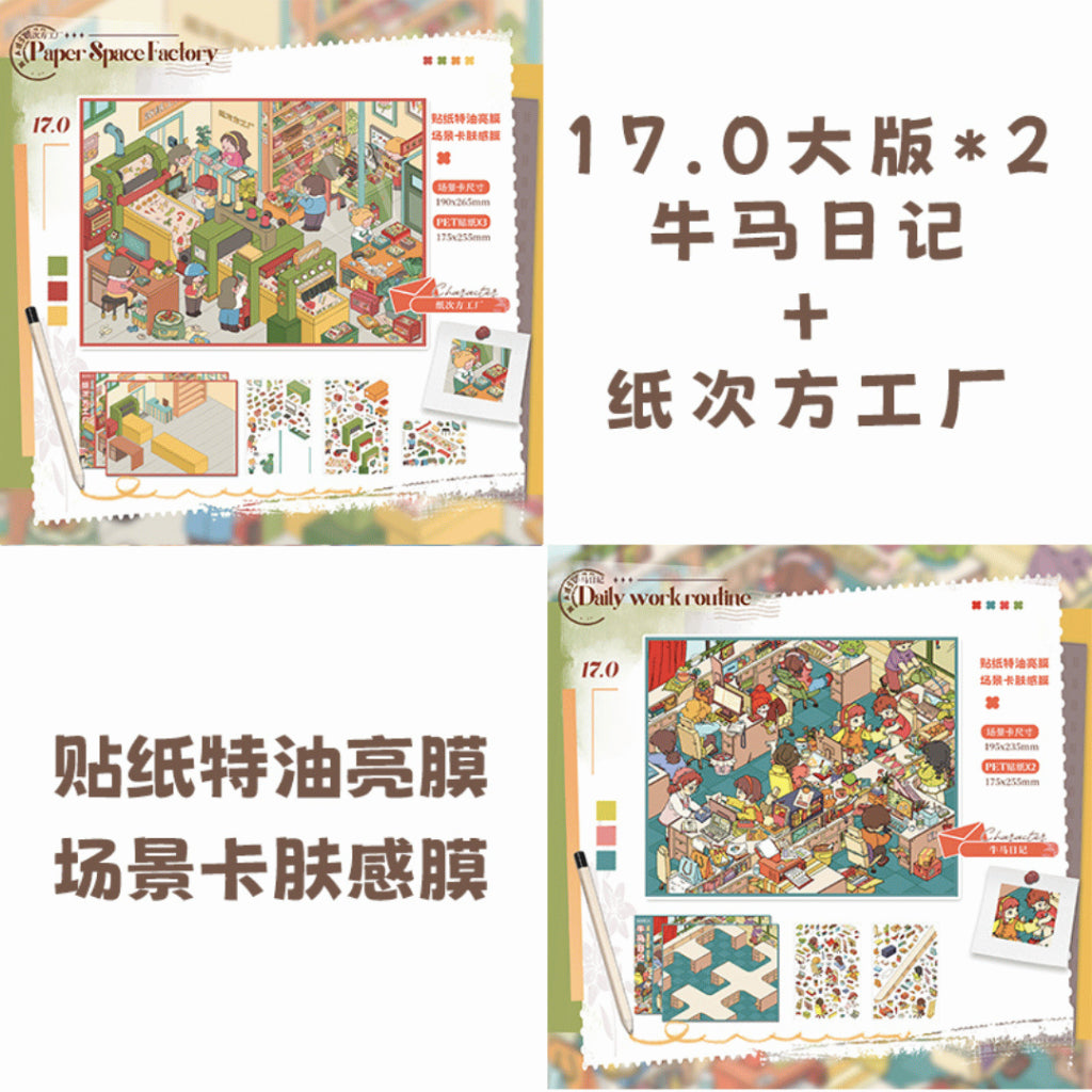 Discover the beauty of craftsmanship and daily wonder in the Creative Life Series. This 2-scene collection features White Pagoda Restaurant and Paper Factory, each filled with intricate details that tell a story of creativity and calm. From the soft glow of lanterns to the hum of paper machines, every sticker lets you build your own peaceful world — perfect for journaling, relaxation, and artistic inspiration.