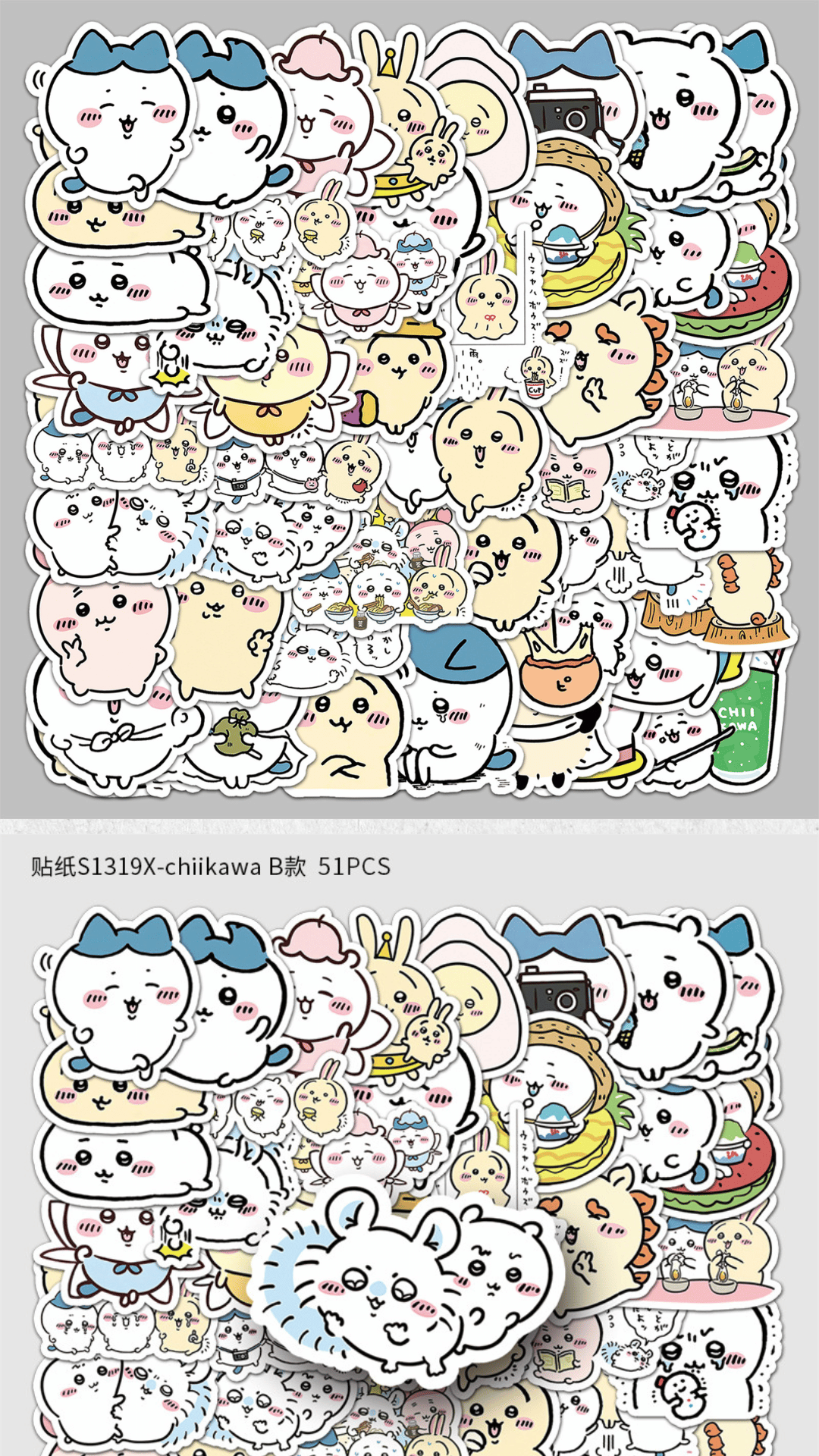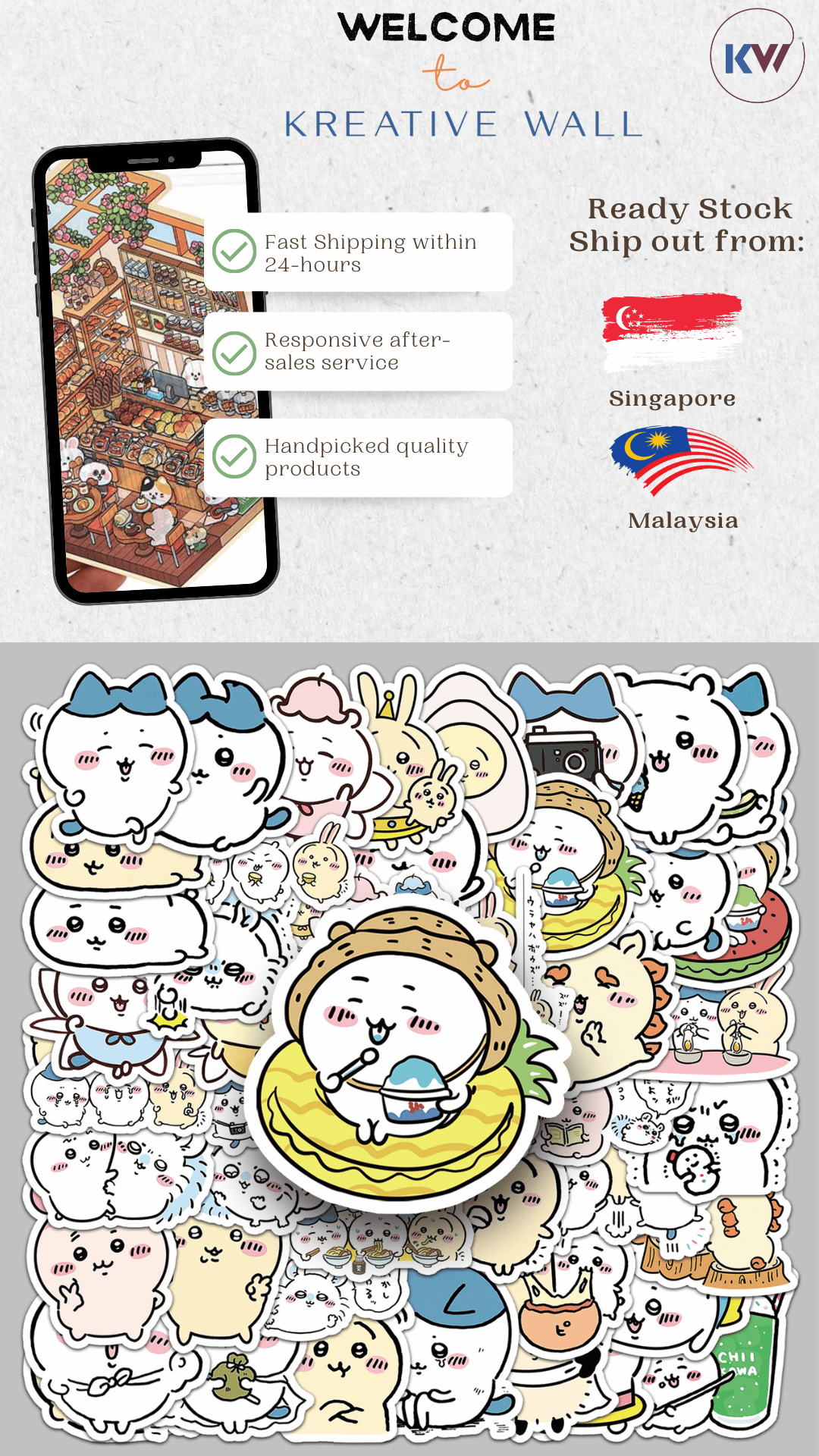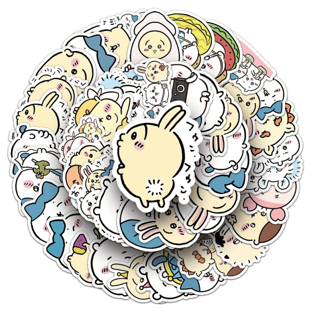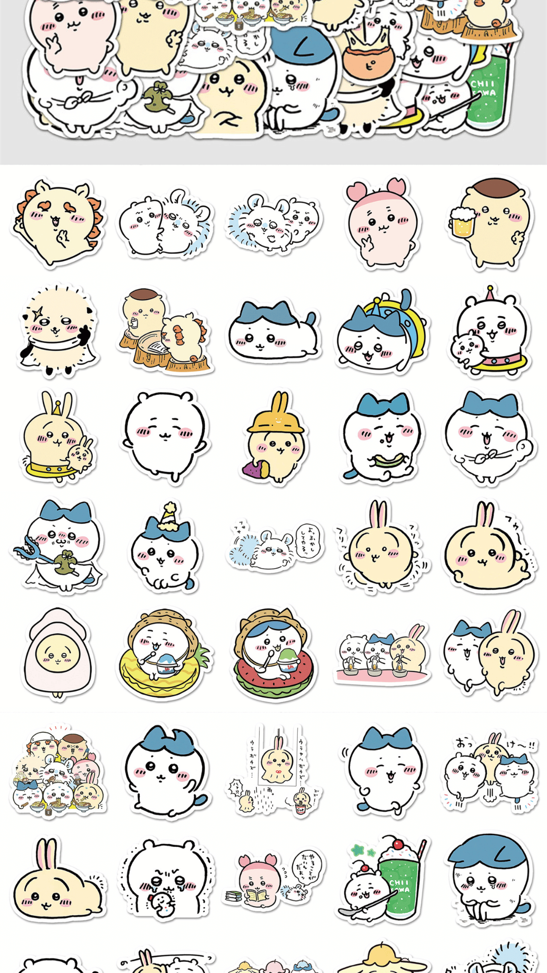 Each pack includes 50 non-repeating Chiikawa-inspired stickers, carefully curated within the same theme. Printed on waterproof PVC, these stickers are durable, easy to peel, and suitable for daily use on journals, planners, laptops, and water bottles.