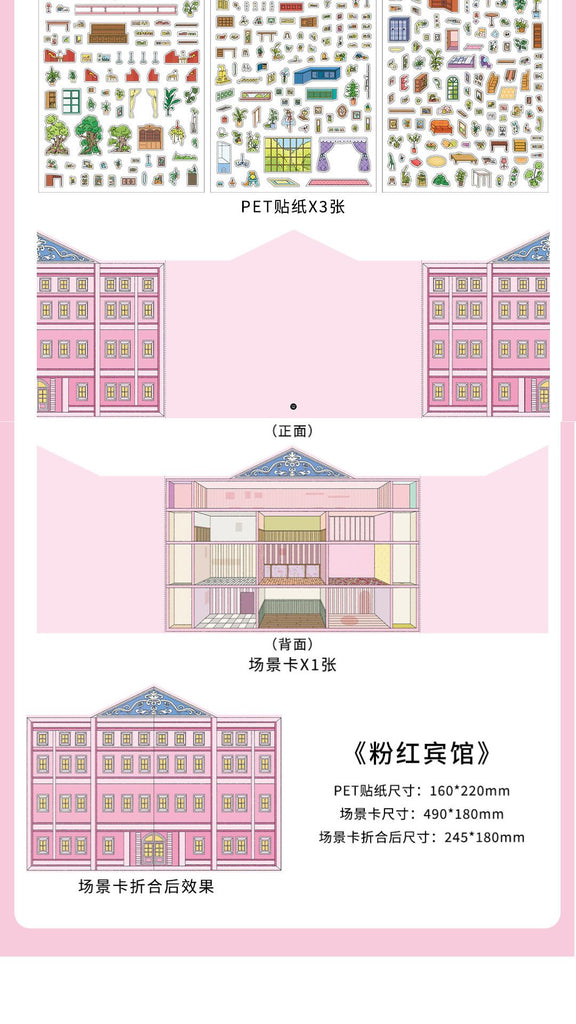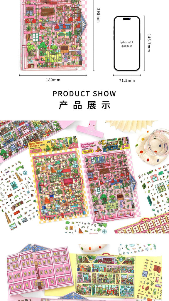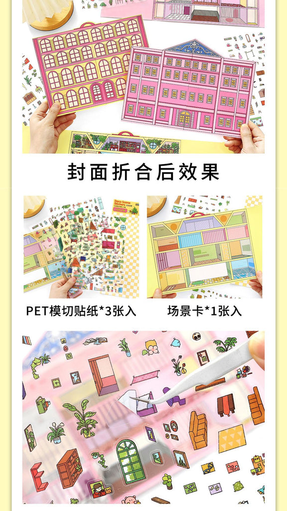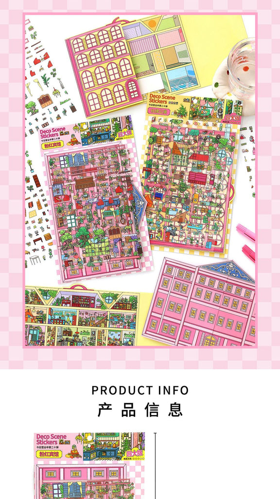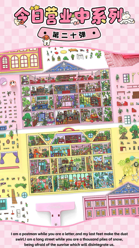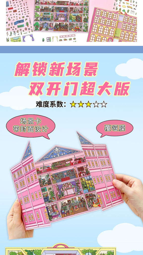 Step into your own grand dollhouse mansion with this 3D Scene Sticker Set! Featuring colorful multi-floor interiors packed with bookshelves, bedrooms, kitchens, gardens, and cozy living spaces — you can design and decorate every tiny detail just the way you like.
