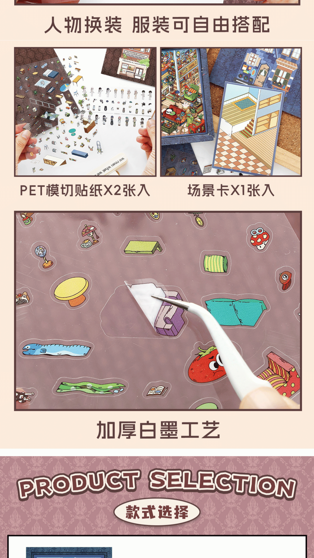 • 2–3 pcs of detailed sticker sheets per design