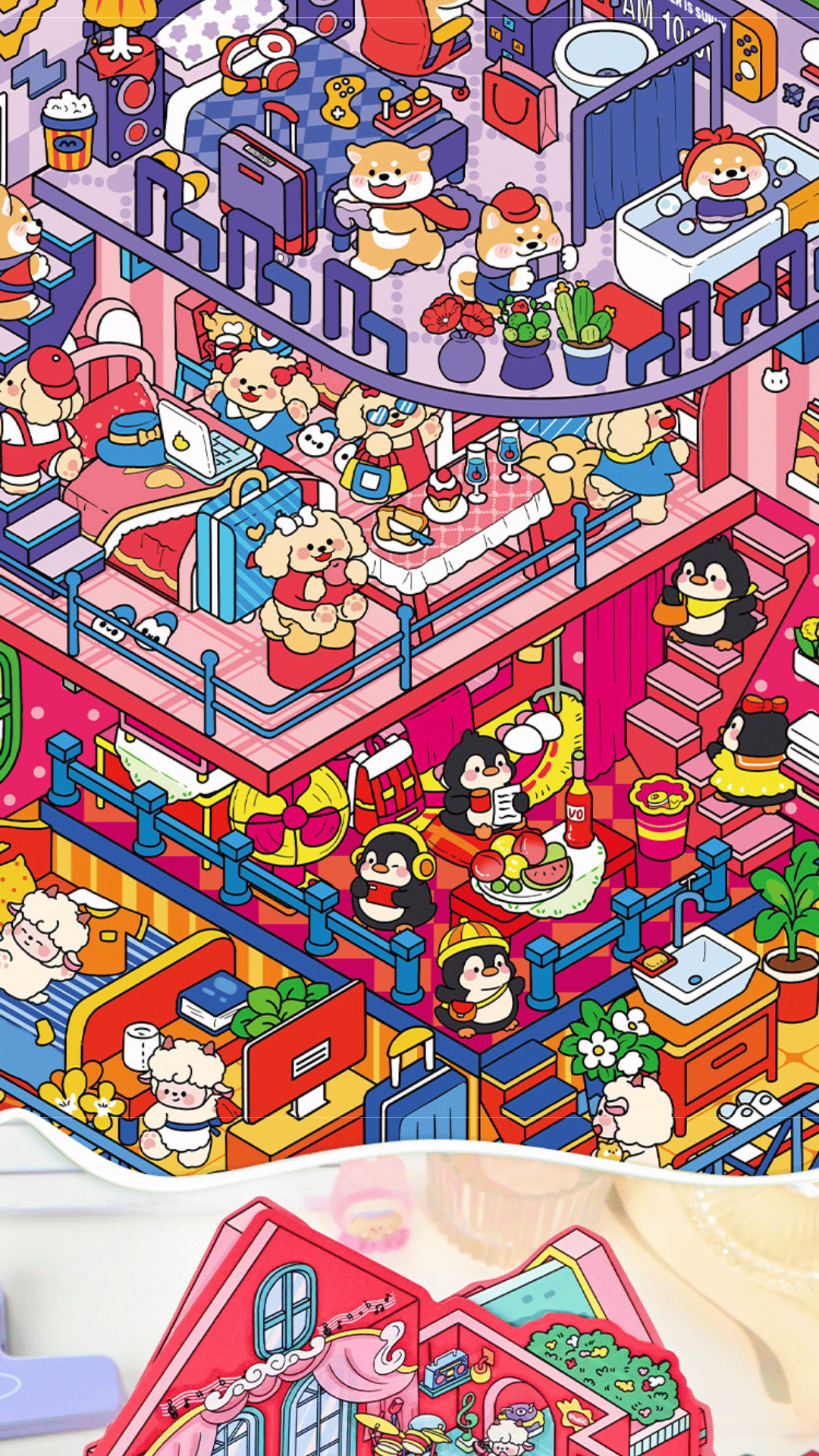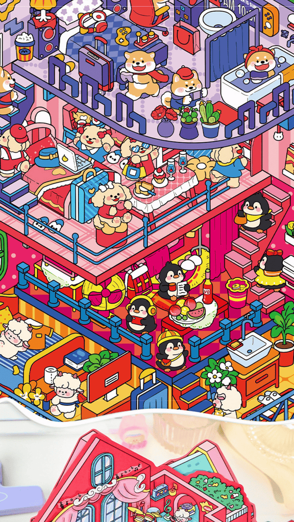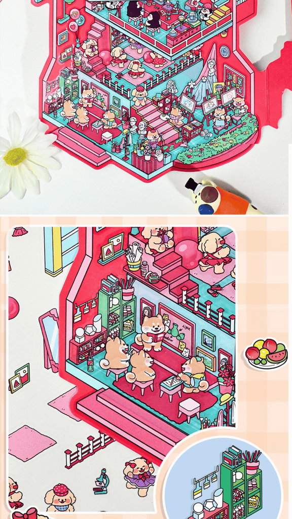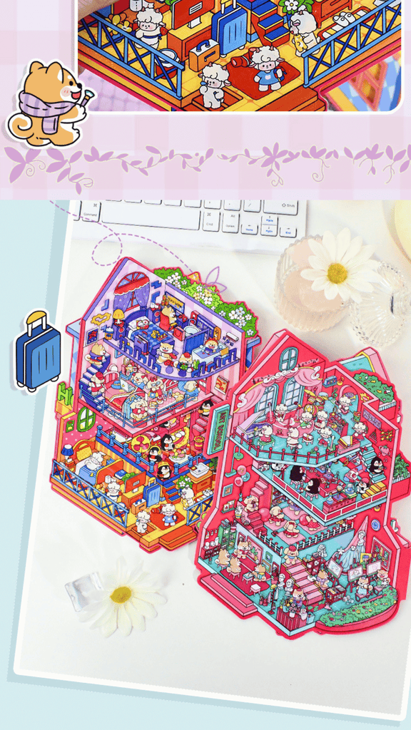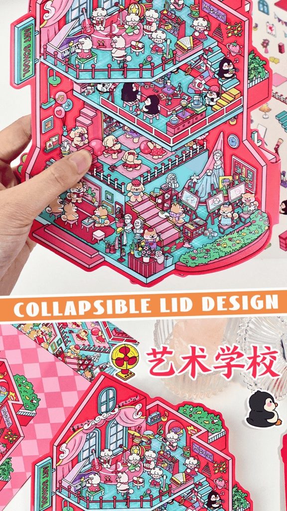 “Homestay & Art School” – a super adorable, colorful 3D landscape sticker collection where creative animals live, play, sleep, and study! Featuring two full house scenes — a cozy animal Homestay and a lively Art School — this set is perfect for anyone who loves fun, detail-packed stickers.