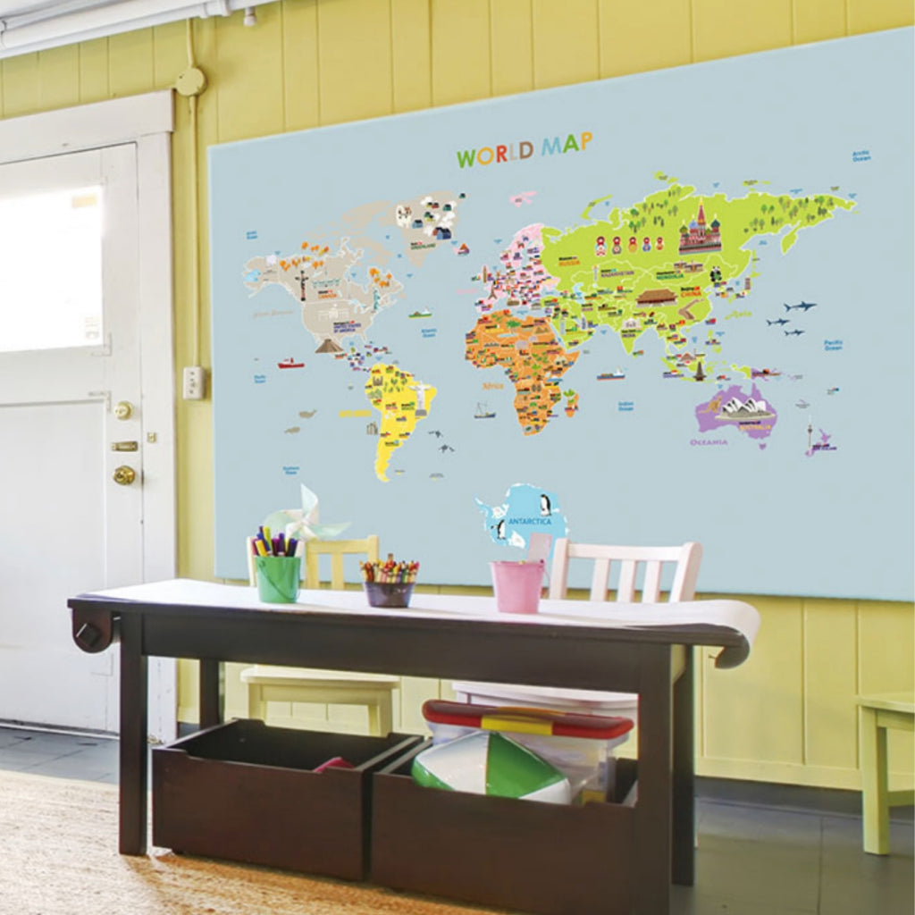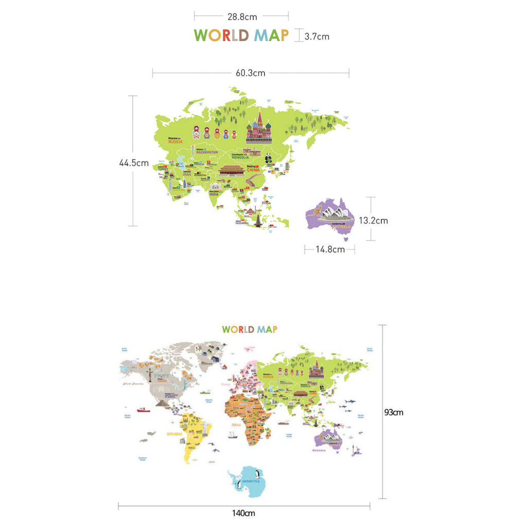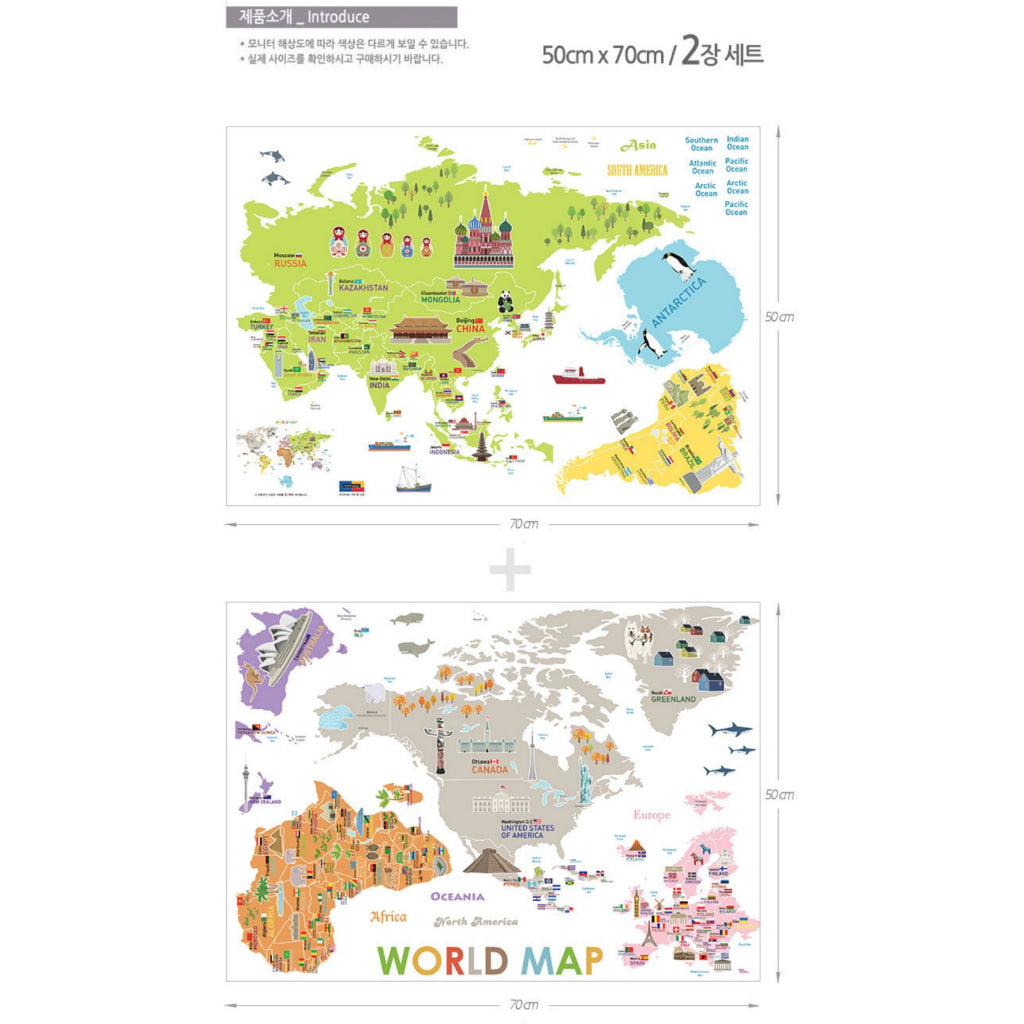 Kid Character World Map 2 pcs set Wall Sticker for Modern Home Office, Nursery Room Wall Sticker, Peel and Stick Wall St