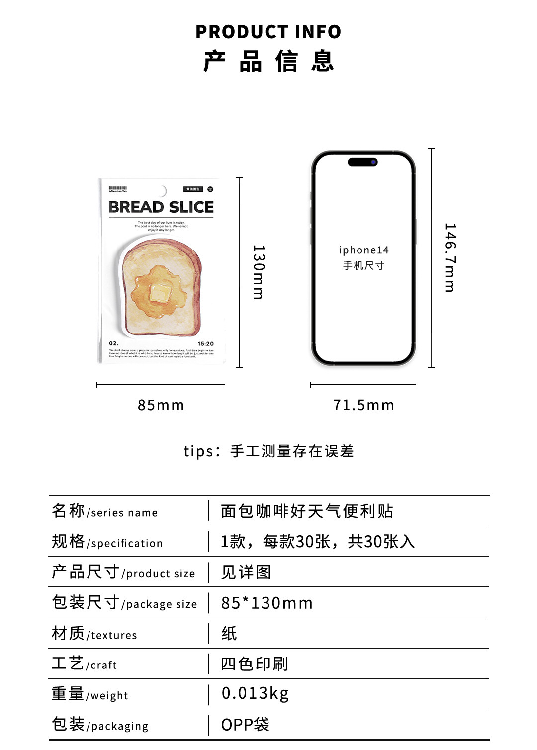 [KW] 30PCS Breakfast-Themed Sticky Notes – Coffee & Toast Memo Pad (130mm x 85mm) for Journaling, Planning & Office Use