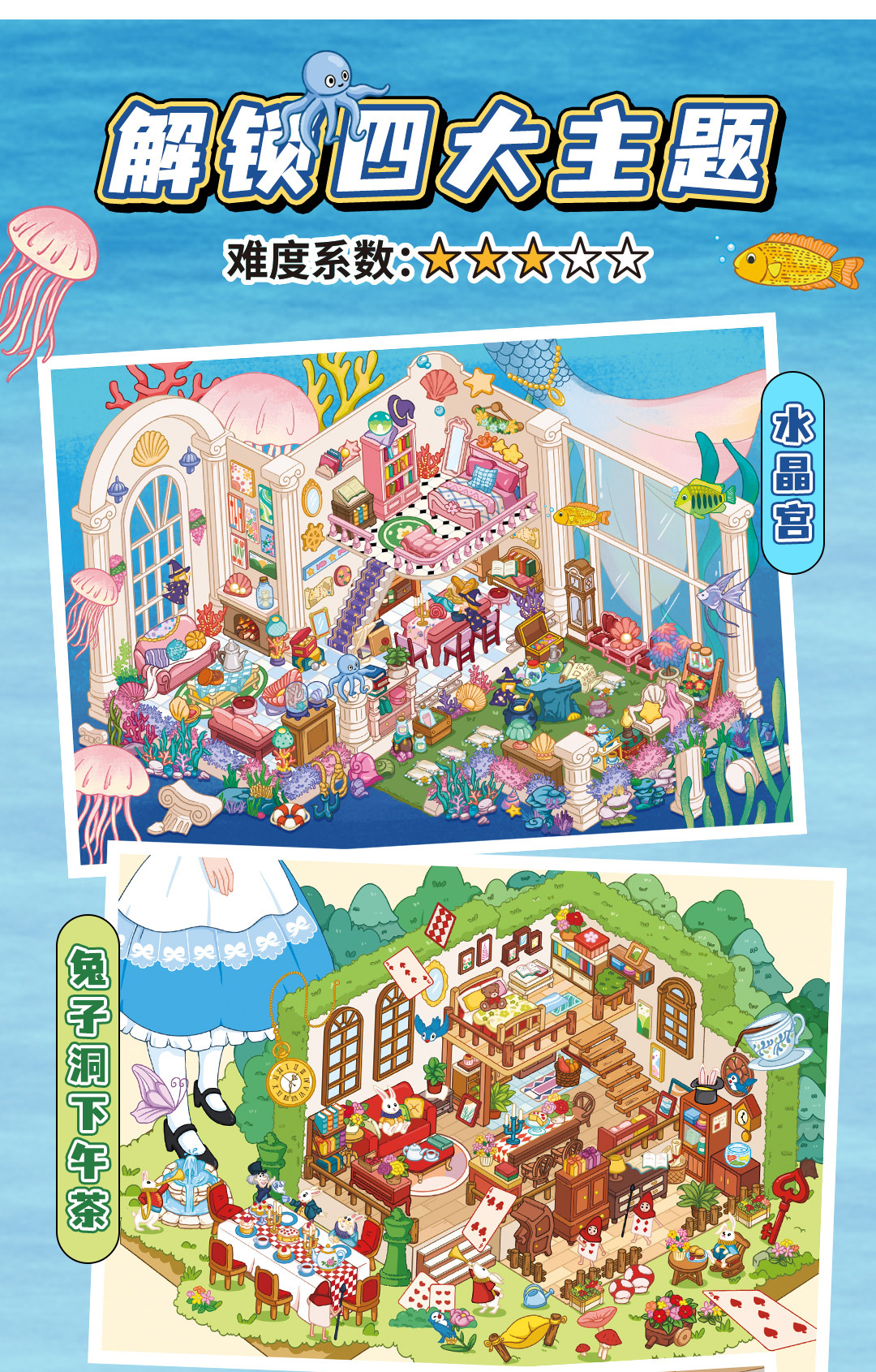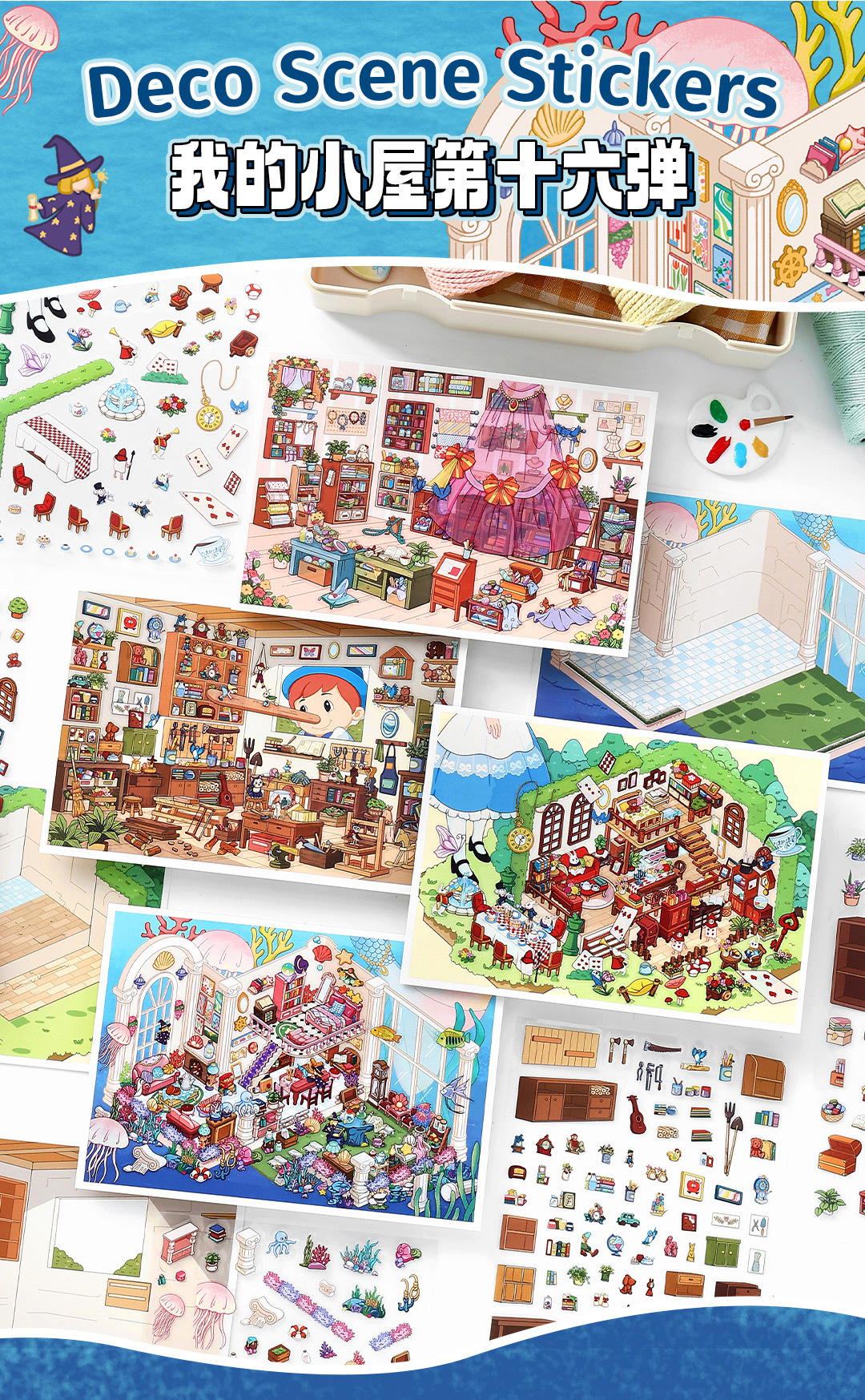 Featuring Rabbit Afternoon Tea, Pink Sewing Room, Underwater Crystal Palace and Wooden Puppet Room, each scene is filled with cute details and layered designs. Whether you enjoy journaling, scrapbooking, or simply assembling scenes piece by piece, this therapeutic activity helps boost focus, creativity, and emotional calm. A great choice as the best gift for adults, students and teens who love cute stickers and hands-on fun.