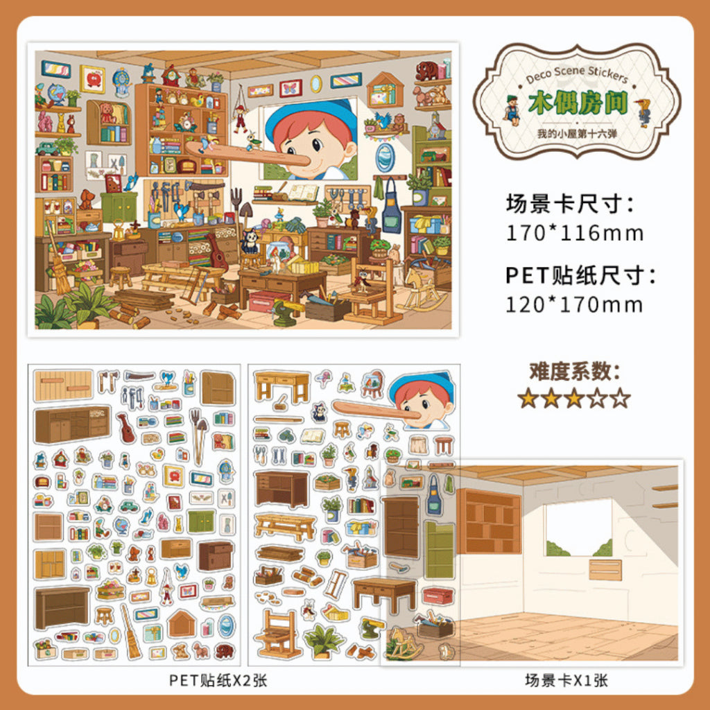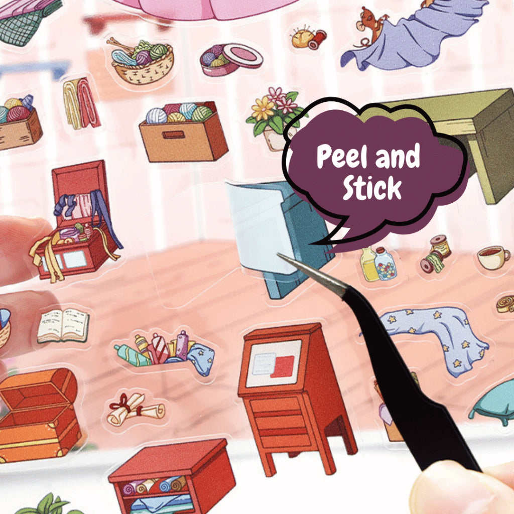 Explore a charming miniature city world with the Room Scene Sticker Series. This 3D scene sticker set is designed for relaxing creativity, stress relief activities, and fun bonding time with family or friends. Perfect as a calming hobby, puzzle-style activity, or screen-free play.