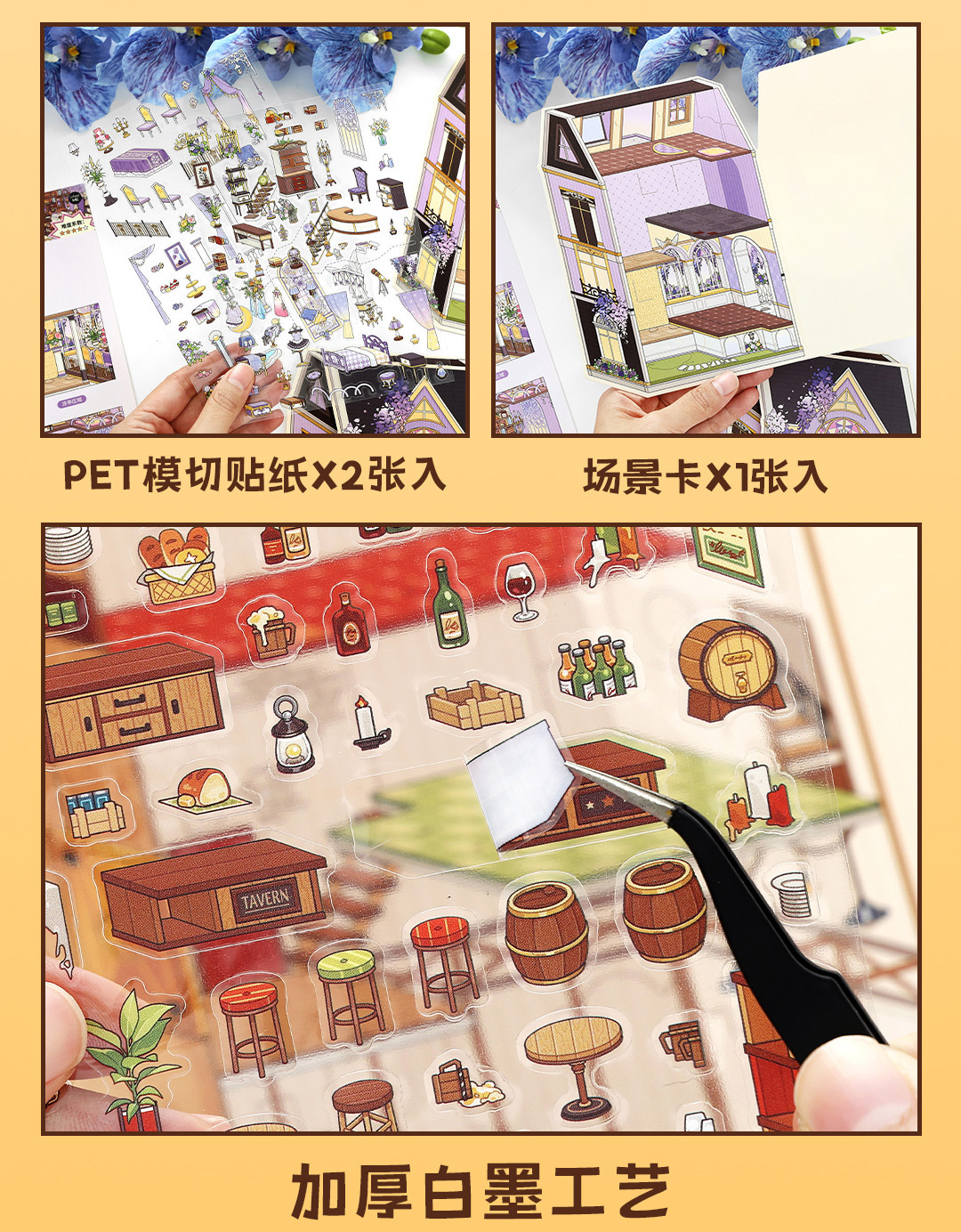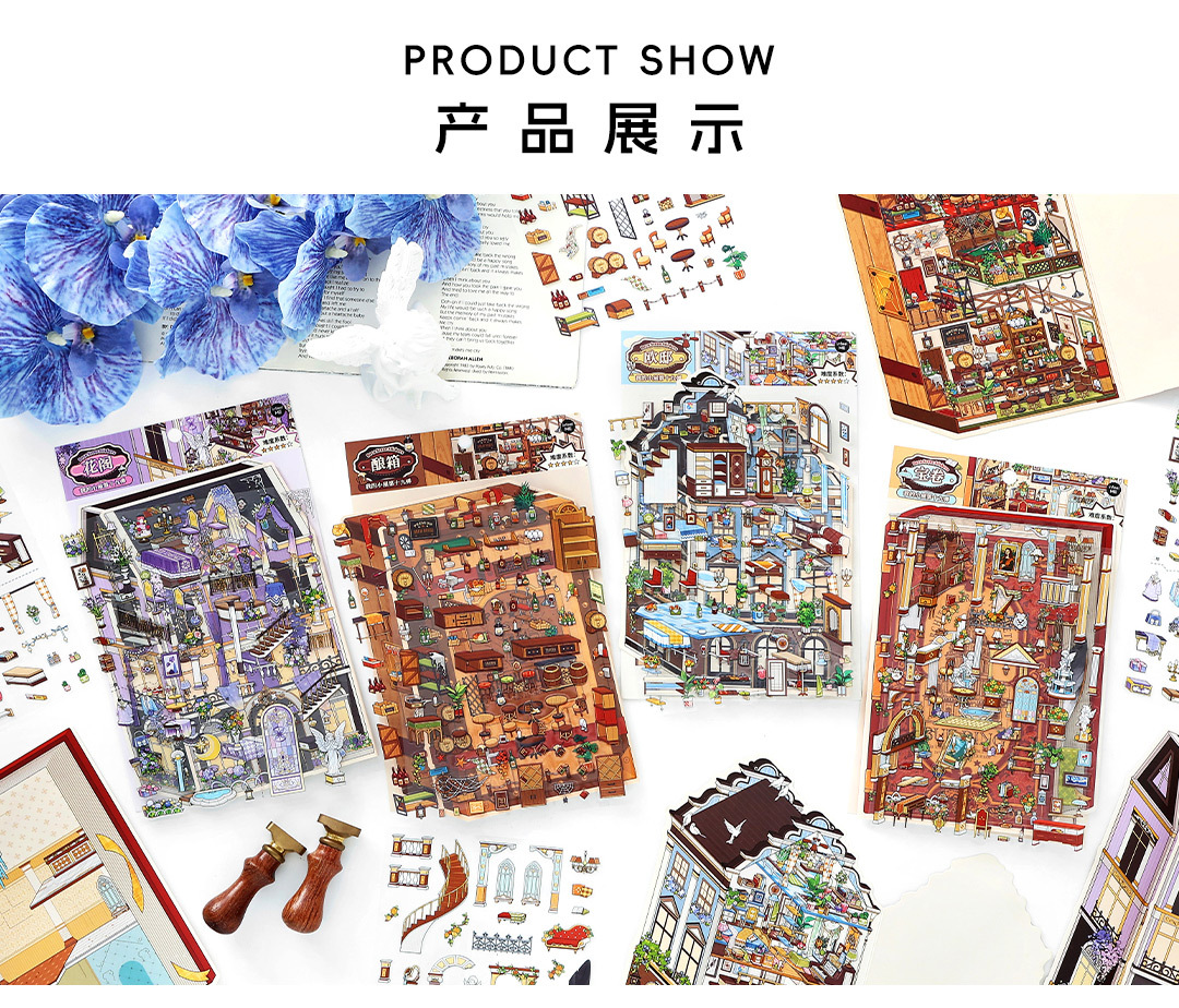 Explore a charming miniature city world with the Room Scene Sticker Series. This 3D scene sticker set is designed for relaxing creativity, stress relief activities, and fun bonding time with family or friends. Perfect as a calming hobby, puzzle-style activity, or screen-free play.