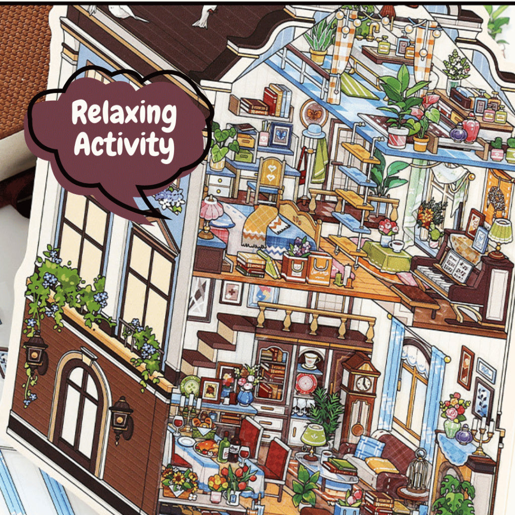 Featuring Little Brew Loft, Royal Library Nest, Lavender Bloom Villa and Sunny Ivy House, each scene is filled with cute details and layered designs. Whether you enjoy journaling, scrapbooking, or simply assembling scenes piece by piece, this therapeutic activity helps boost focus, creativity, and emotional calm. A great choice as the best gift for adults, students and teens who love cute stickers and hands-on fun.