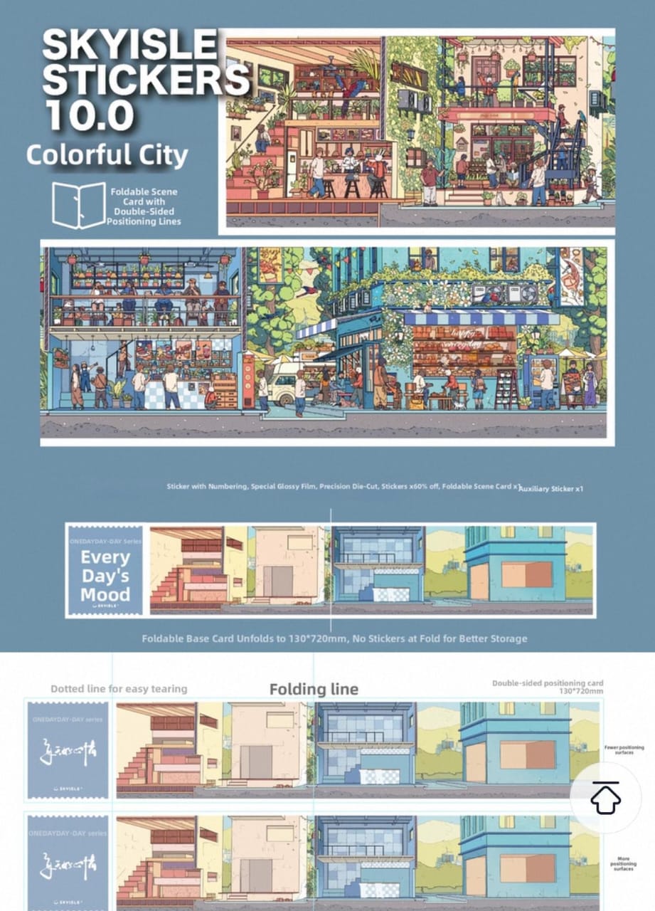 Explore a charming miniature city world with the City Scene Sticker Series. This 3D scene sticker set is designed for relaxing creativity, stress relief activities, and fun bonding time with family or friends. Perfect as a calming hobby, puzzle-style activity, or screen-free play.