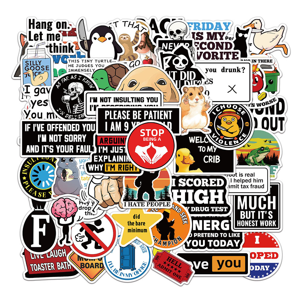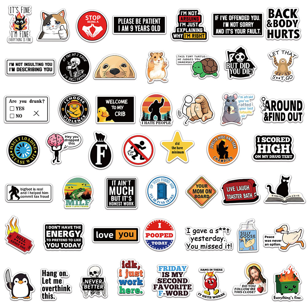 [KW] 50 PCS Prank & Meme Stickers – Funny, Sarcastic & Trolling Quotes for Laptops, Water Bottles & More