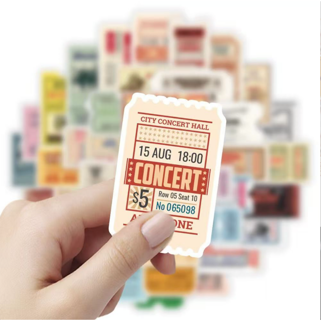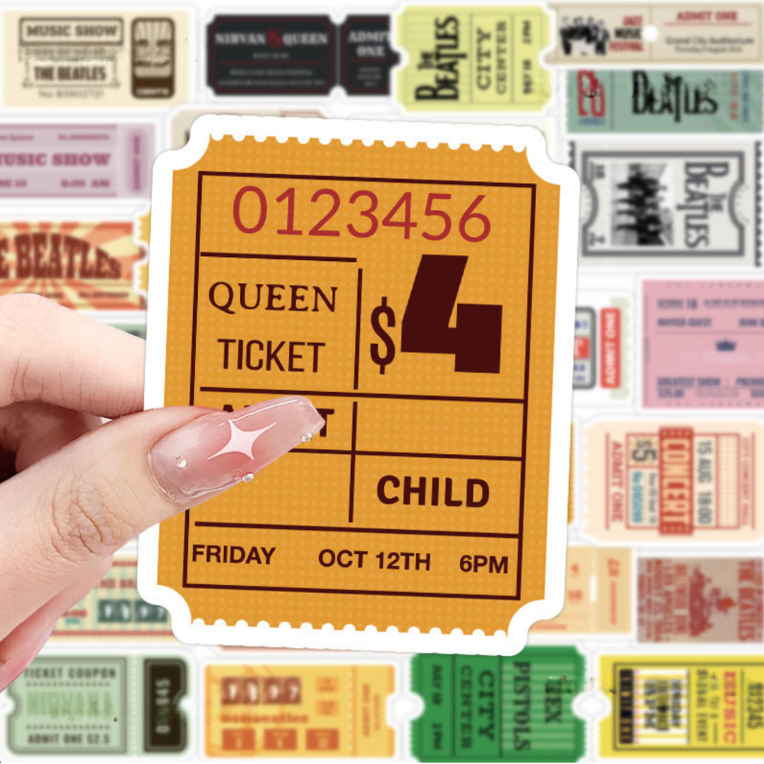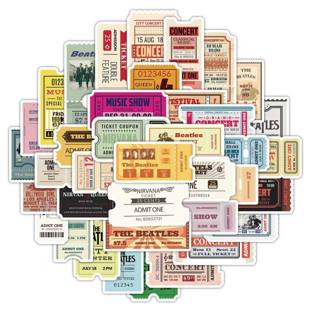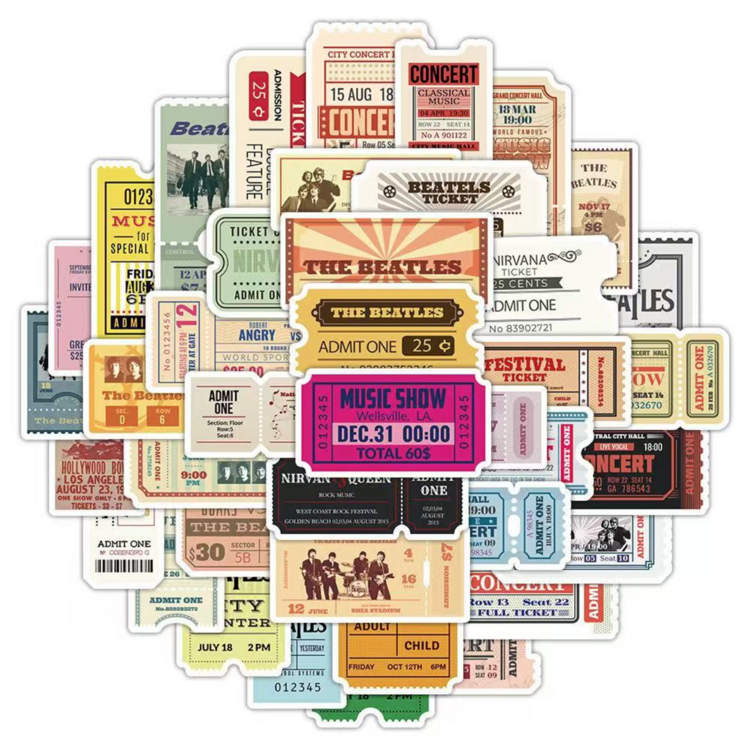 - 50 pcs of distinct ticket stub stickers