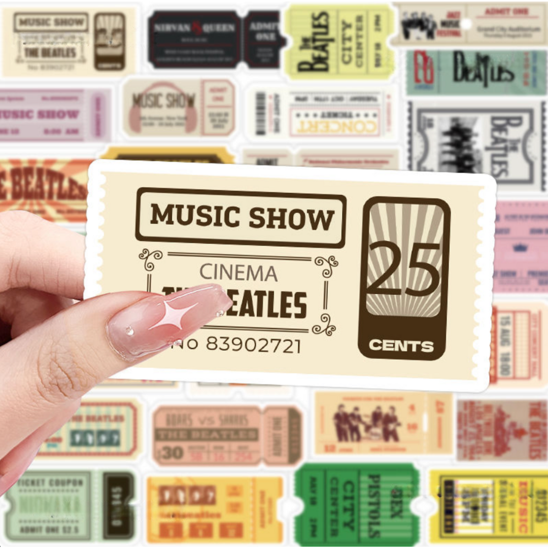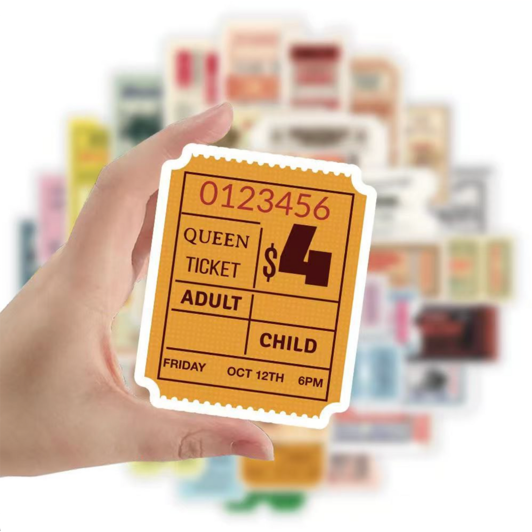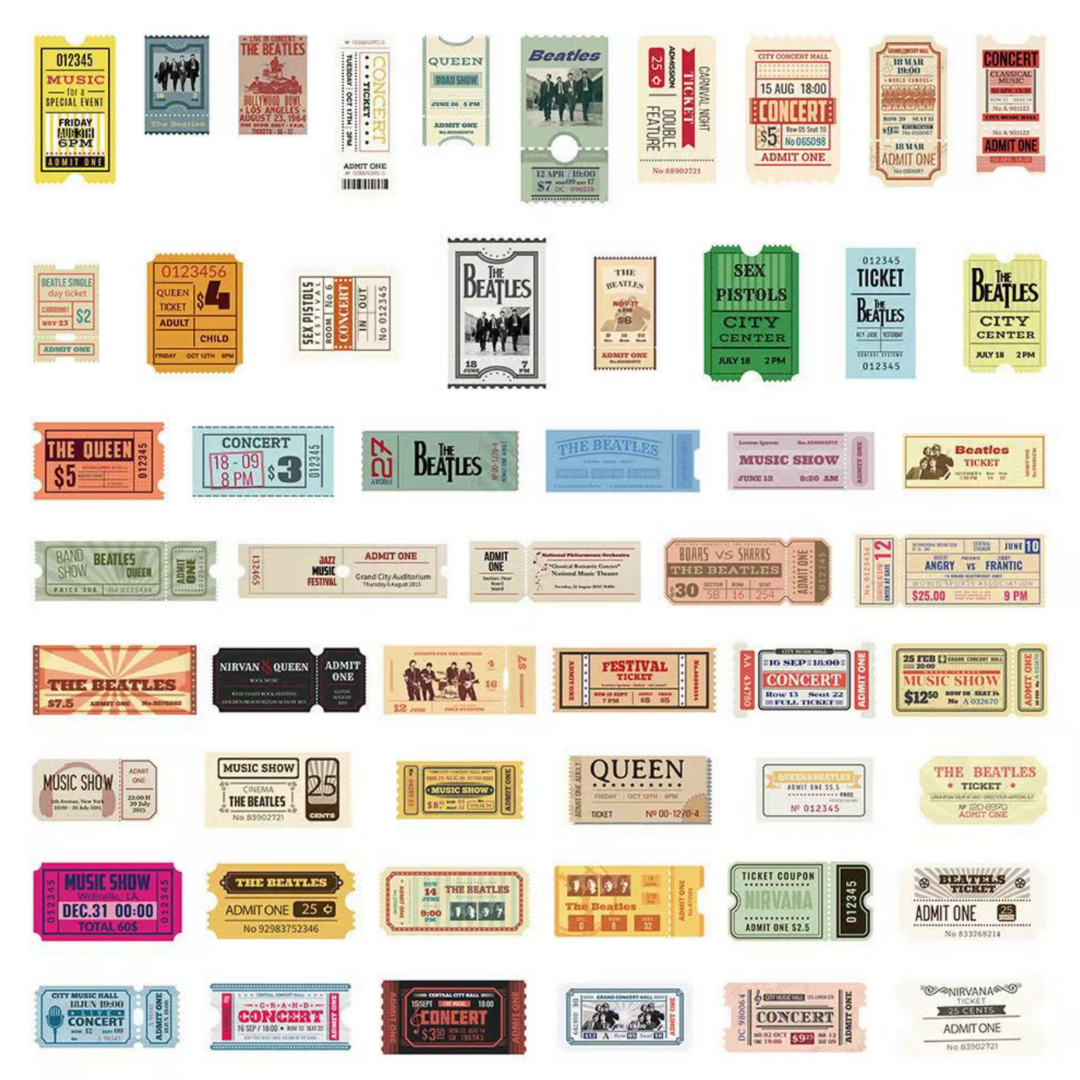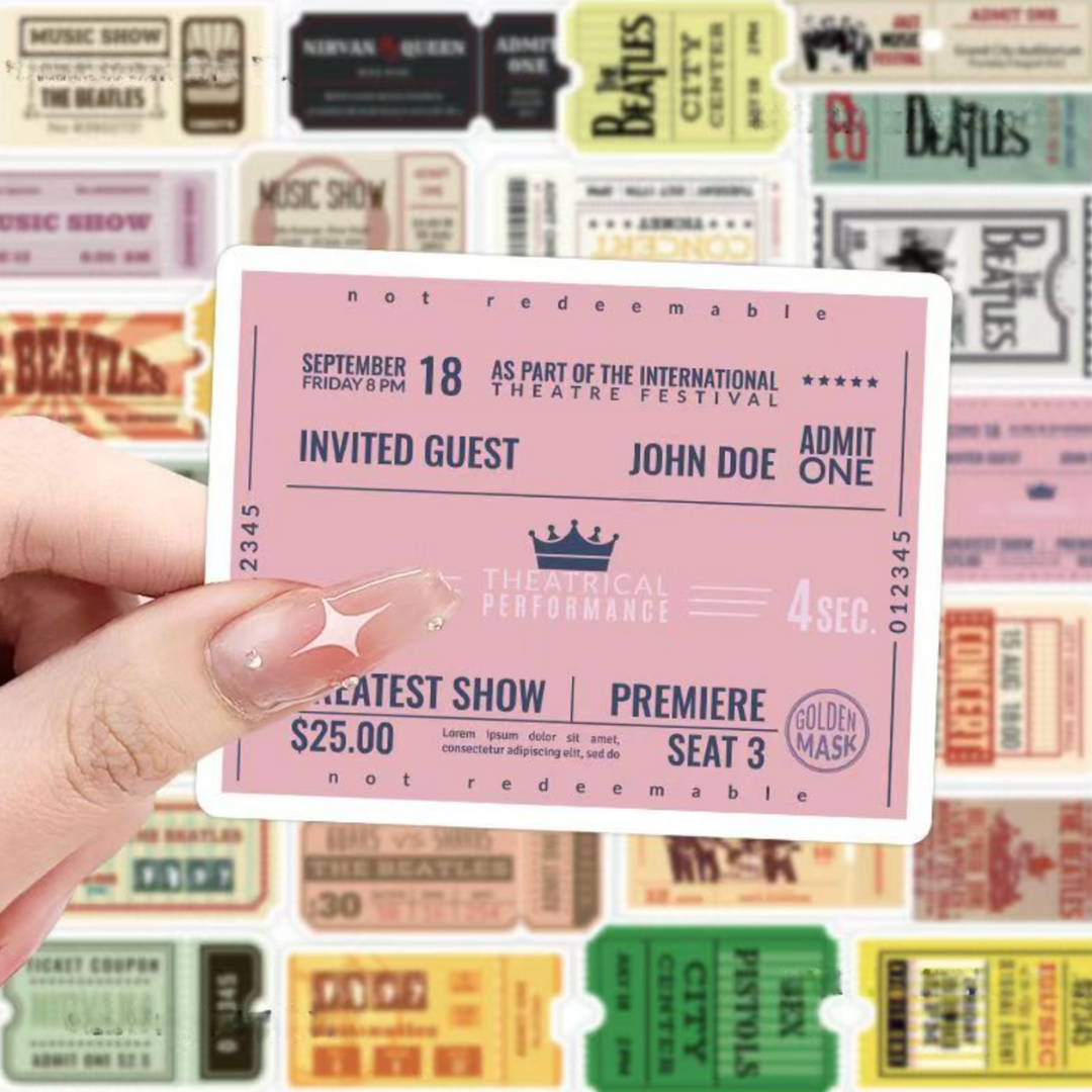 - 50 pcs of distinct ticket stub stickers