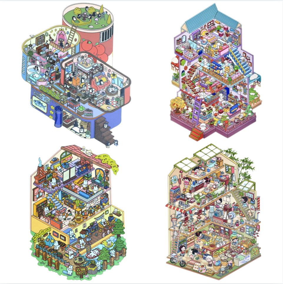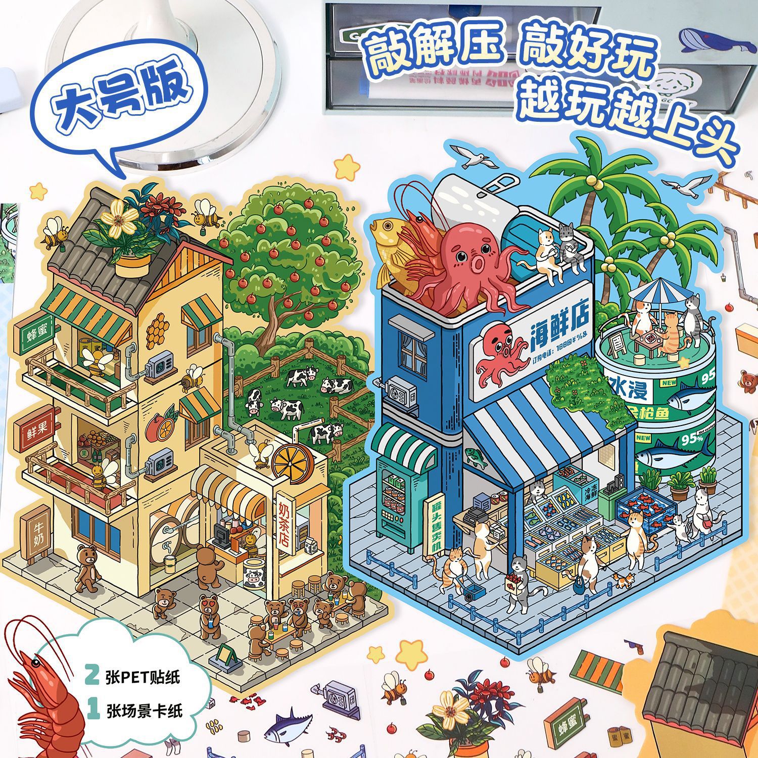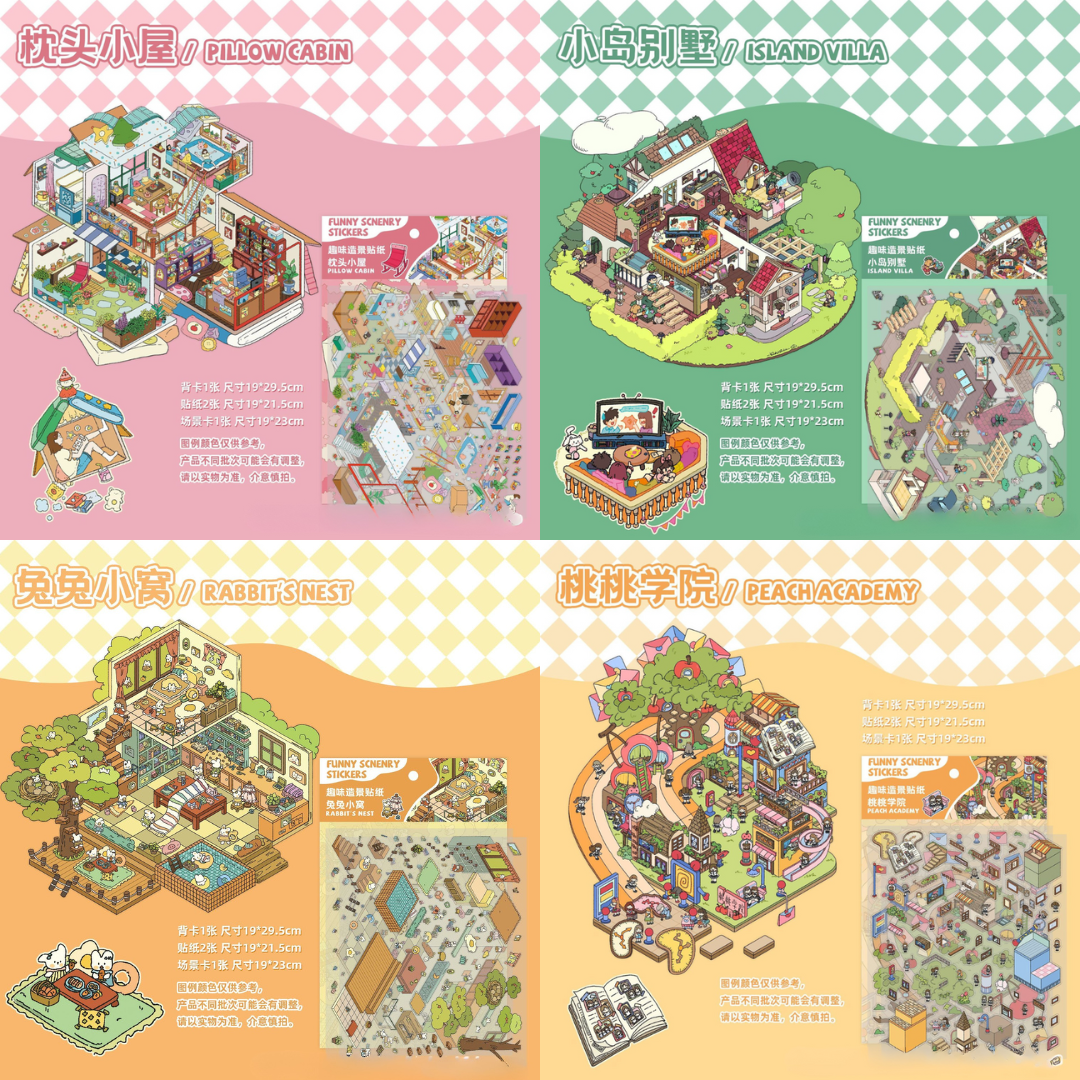 [KW] Big Scene Stickers Collection A - 3D Landscape Sticker for Scrapbook, Journal, Crafts & Cute Gifts - Free Tweezer