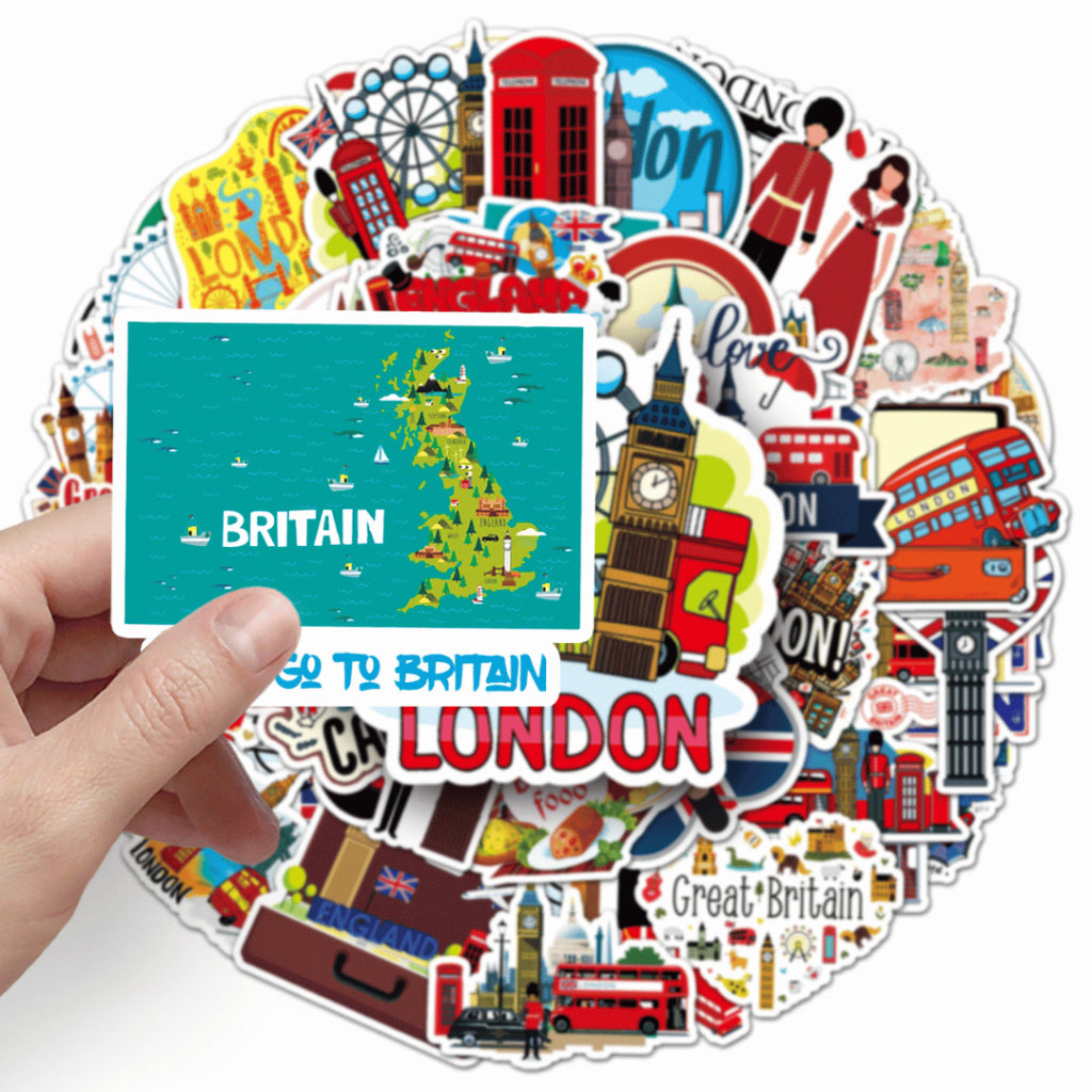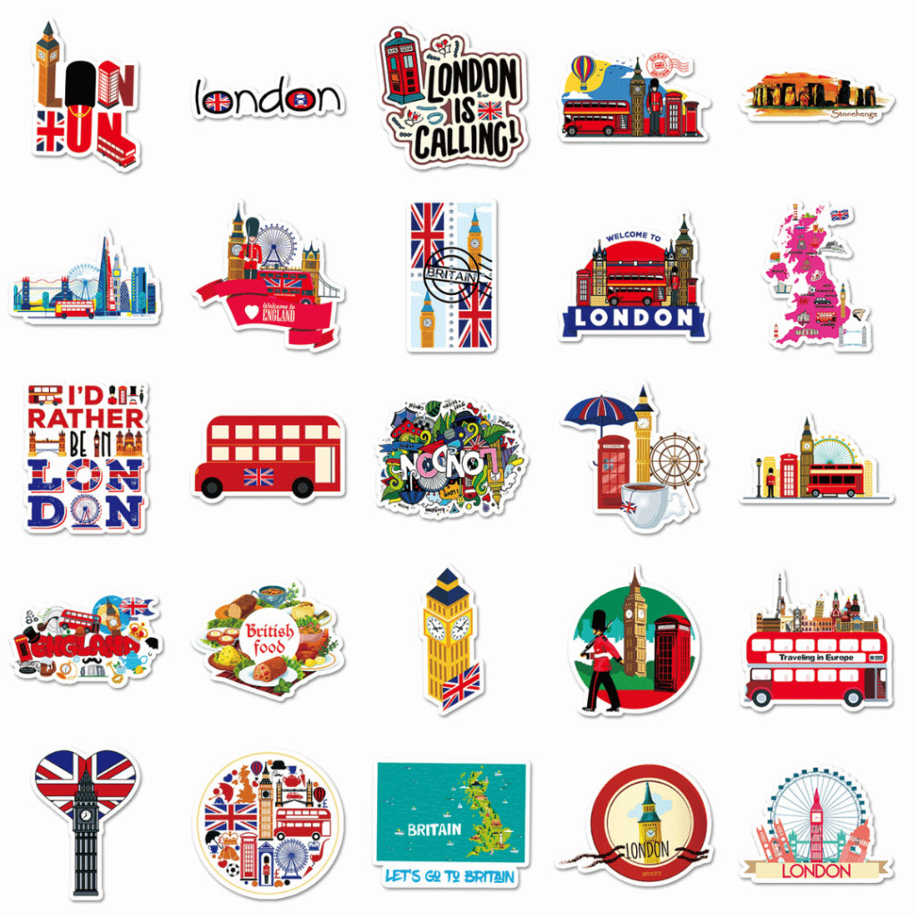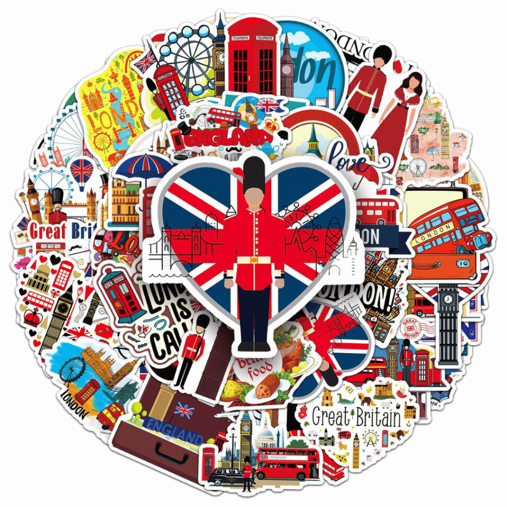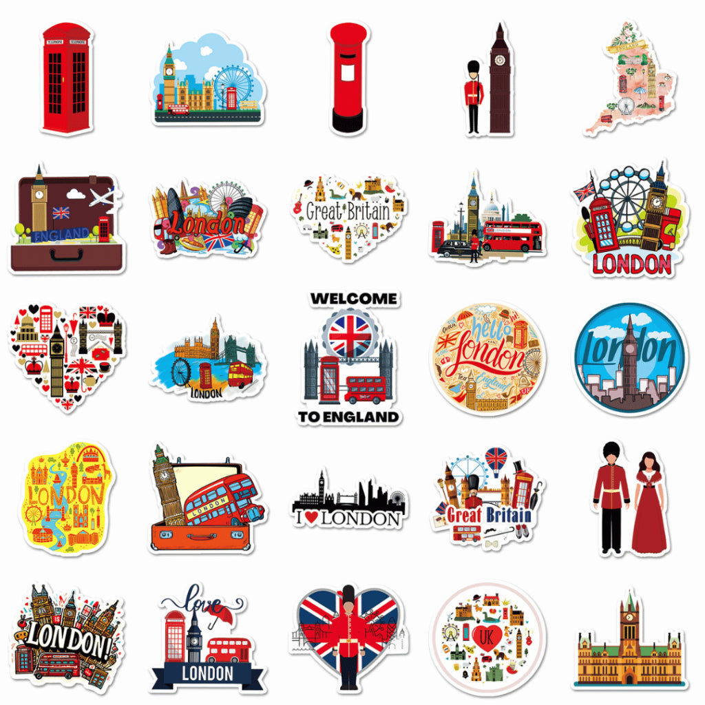 Each pack includes 50 non-repeating travel-themed stickers, curated within a cohesive London-inspired aesthetic. Made from waterproof PVC, these stickers are durable, easy to peel, and perfect for daily use on journals, planners, laptops, and water bottles.