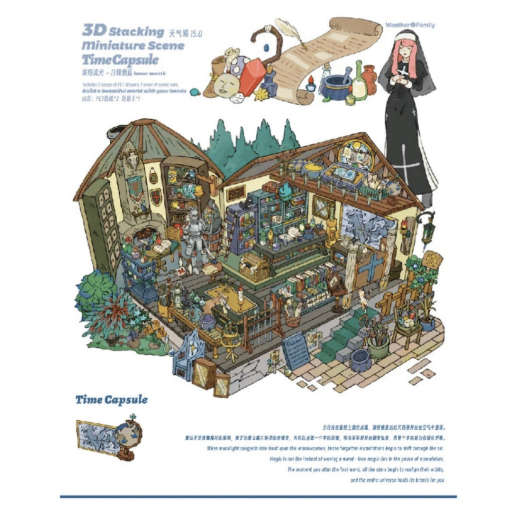 Discover peaceful charm with the Mystic Countryside Series, a calming pair of 3D stacking miniature scenes featuring the tranquil Moonlit Monastery Atelier and the whimsical Star Whisper Cottage. Each scene is filled with enchanting objects, rustic textures, warm lighting details and hidden storytelling elements—perfect for creative hobby moments, stress relief activities, bonding activities, journaling and scrapbooking. The layered 3D rooms invite you to explore a magical countryside world, making it an ideal choice for students, teens and collectors who enjoy relaxing and therapeutic designs.