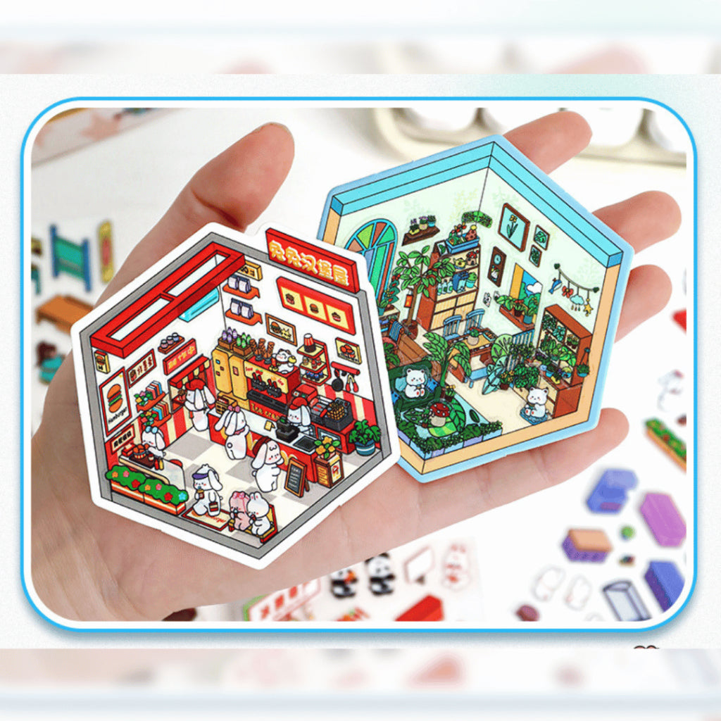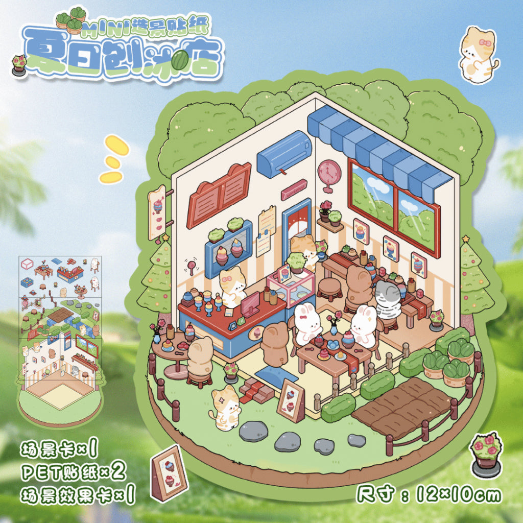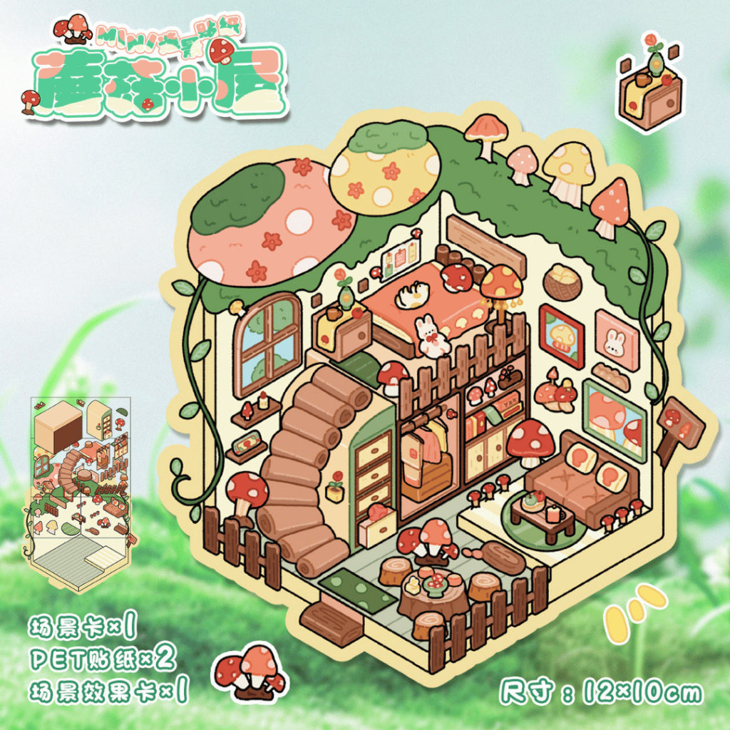 This series includes the enchanting Mushroom Town, the peaceful Plant Cottage, the cheerful and cooling Summer Ice Cream Shop, and the energetic Bunny Hamburger Shop. Each scene brings a charming atmosphere with playful colors and delightful details, making your journaling, scrapbooking, and display crafting more fun and imaginative.