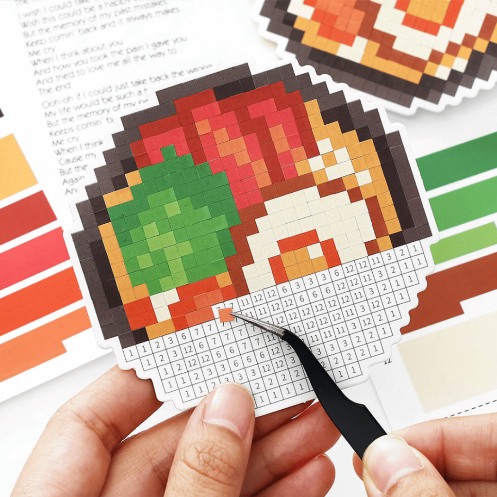 Meet the Pixel Food Craft Art Series, a creative and refreshing twist on scene stickers. Inspired by retro pixel art, this set lets you recreate adorable food designs using coloured sticker blocks — a perfect activity for anyone who loves calming hobby projects, puzzle-style creativity, and relaxing stress relief activities. It’s a fun bonding activity for teens, students, and families, especially those who enjoy crafting with a unique digital-art twist.