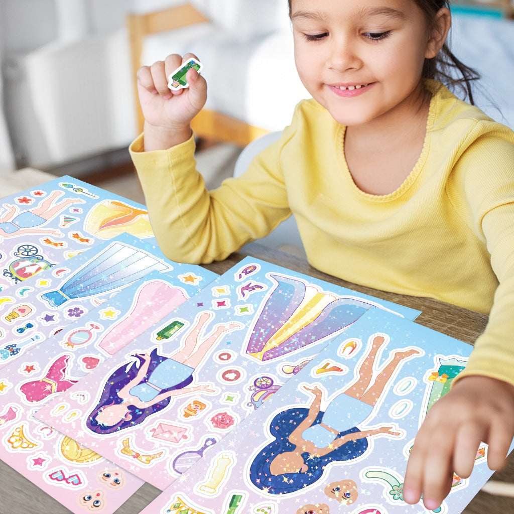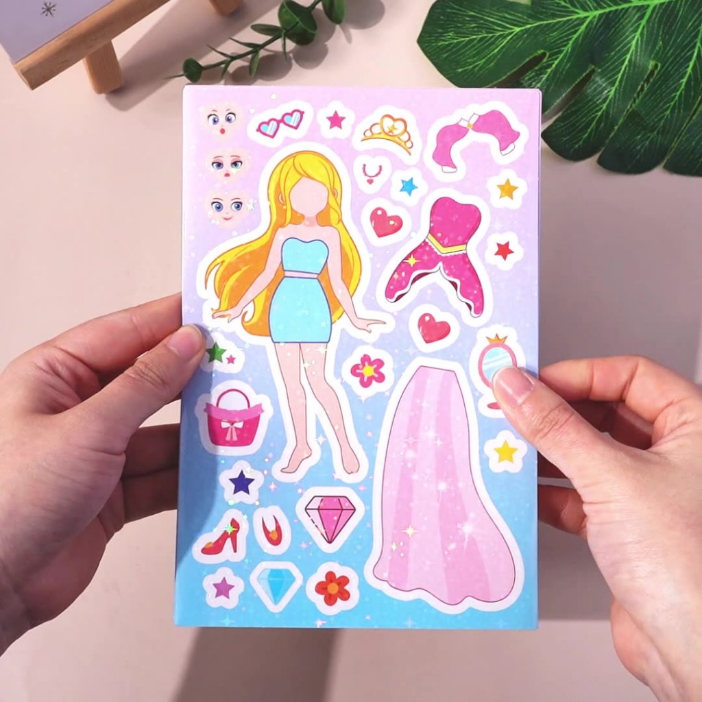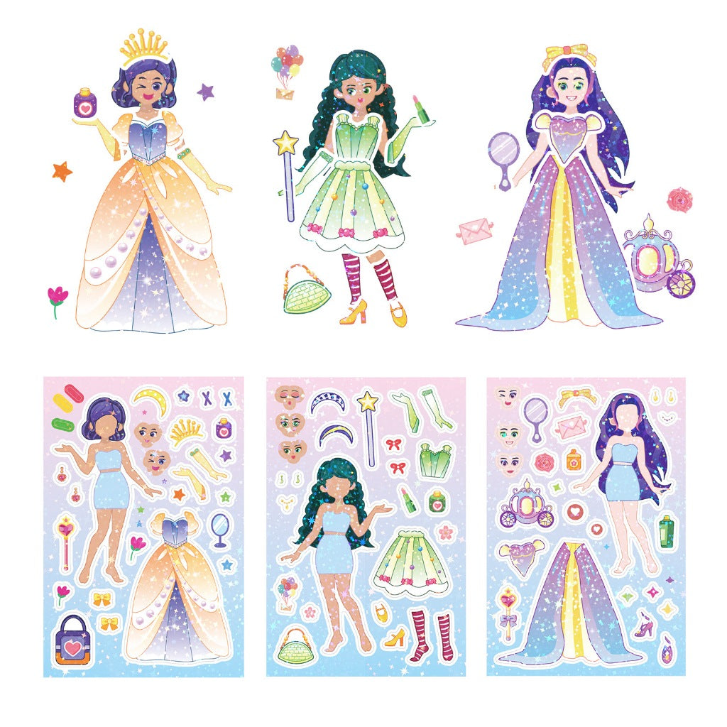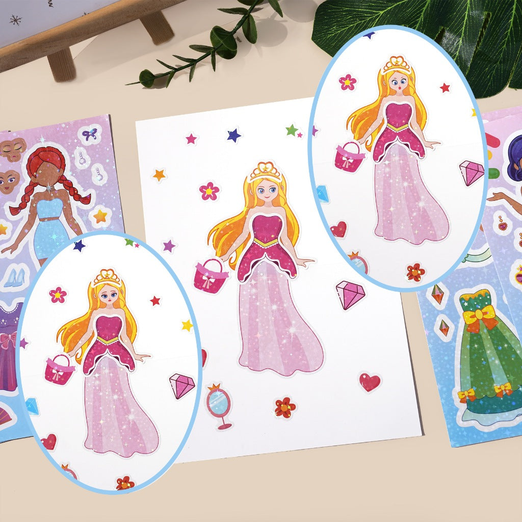 Say hello to the Change-A-Face Series – Princess Characters, where kids can transform adorable characters any way they like. This 8-sheet Princess Fantasy pack lets children mix and match eyes, mouths, hats, props, and expressions to create endless fun combinations.
