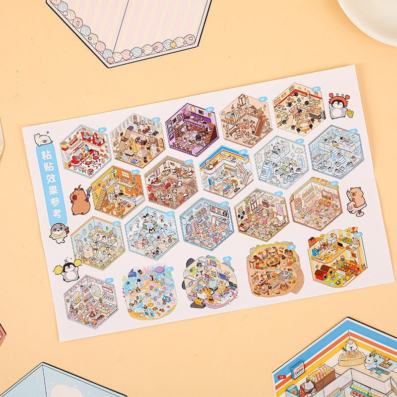 Step into the cutest animal town with this Miniature Café & Shop Scene Sticker Set! From cozy bakeries and pizza shops to restaurants and supermarkets, each scene is brought to life with adorable animal characters and tiny details.