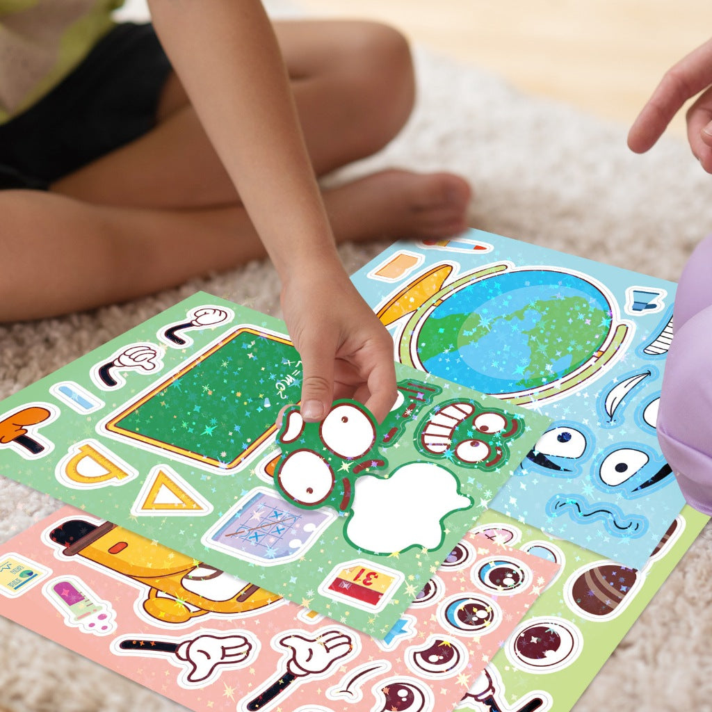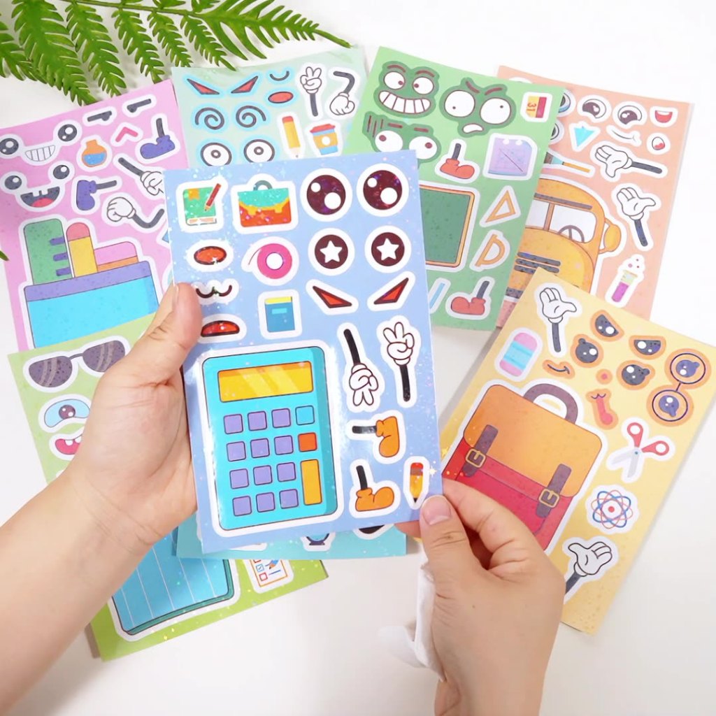 Say hello to the Change-A-Face Series – Stationery, where kids can transform adorable classroom items any way they like. This 8-sheet School Supplies pack lets children mix and match eyes, mouths, accessories, props, and expressions to create endless fun combinations.