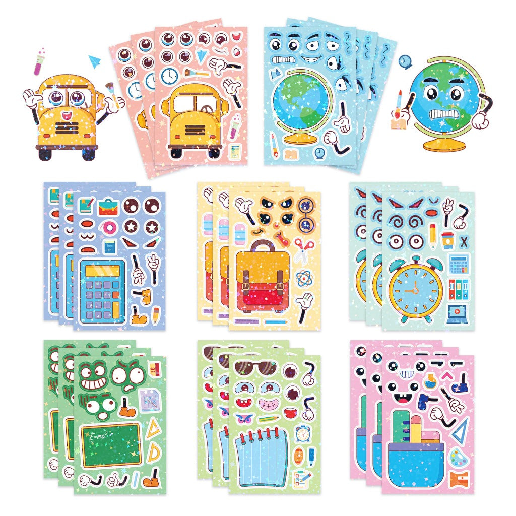 School Supplies Build-A-Face Sticker Pack | 8 Sheets | KH0022