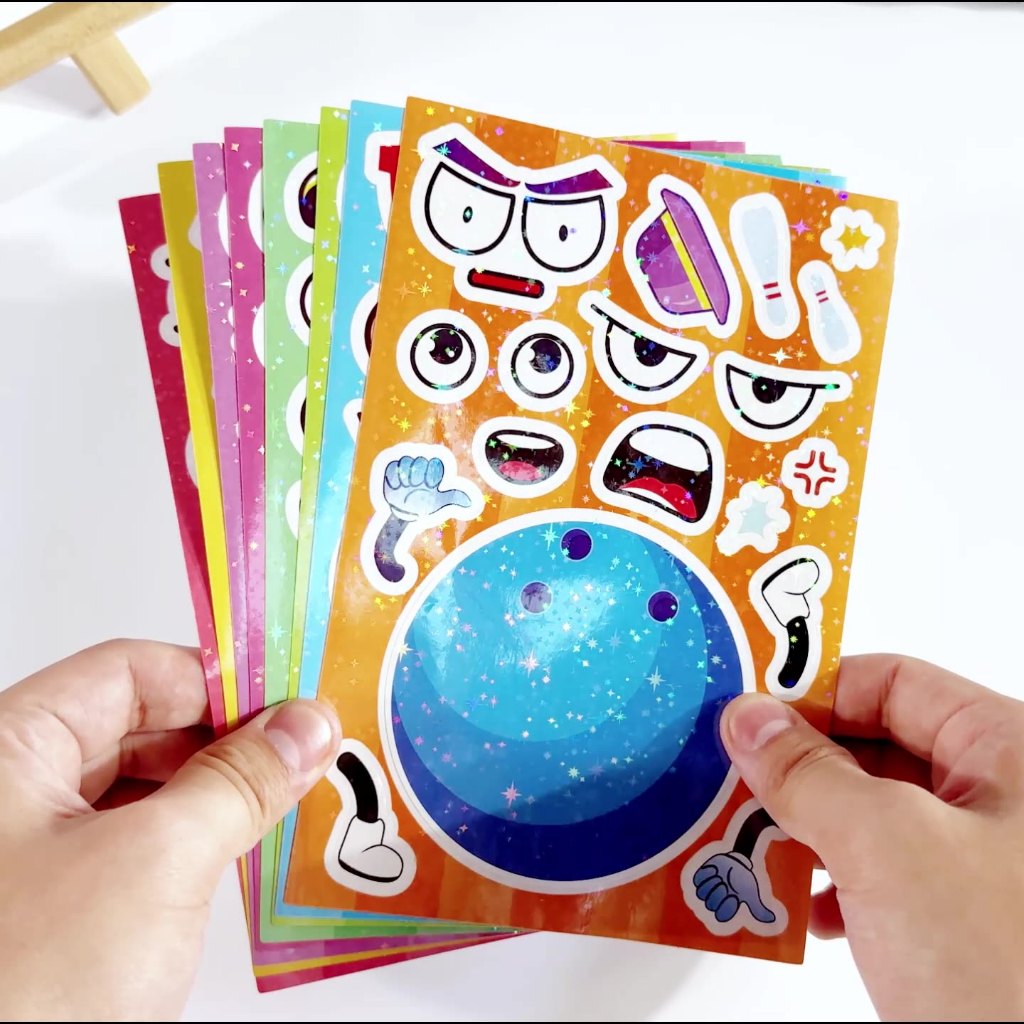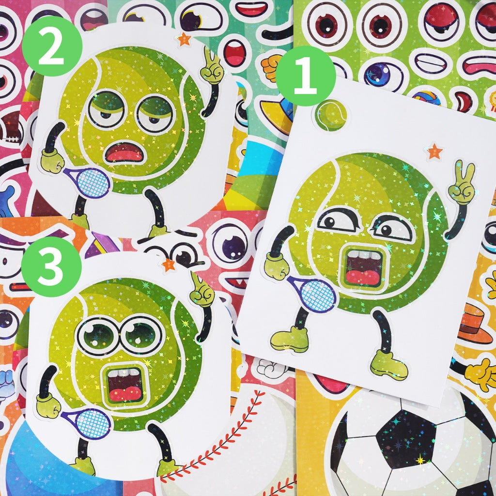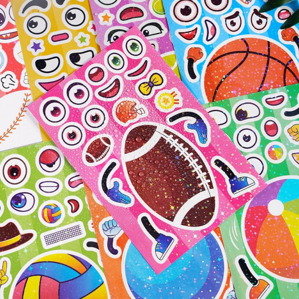 Say hello to the Change-A-Face Series – Sports, where kids can transform fun characters any way they like. This 8-sheet Sporty Balls pack lets children mix and match eyes, mouths, accessories, sports gear, and expressions to create endless playful combinations.