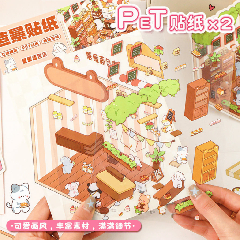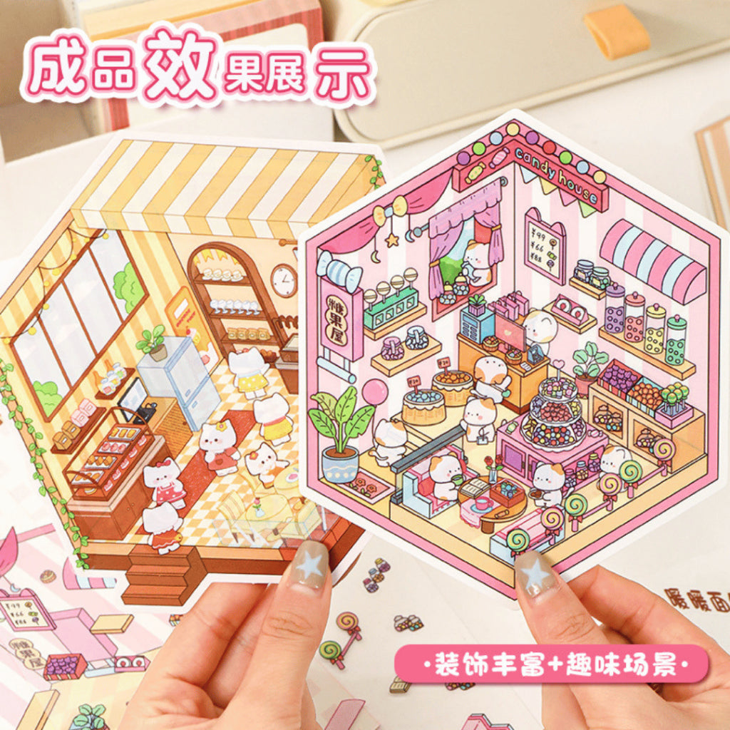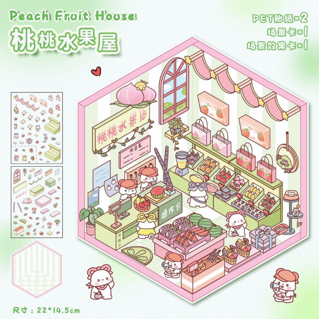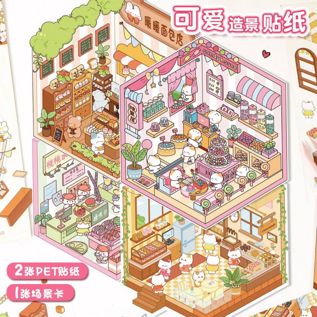 This series features the colourful Candy House, the refreshing Peach Fruit Shop, the warm and homely Kitten Bakery, and the rustic Warm Bread Shop. Each shop is filled with cute details and soft pastel tones that make journaling, scrapbooking, and decorating incredibly fun and inspiring.