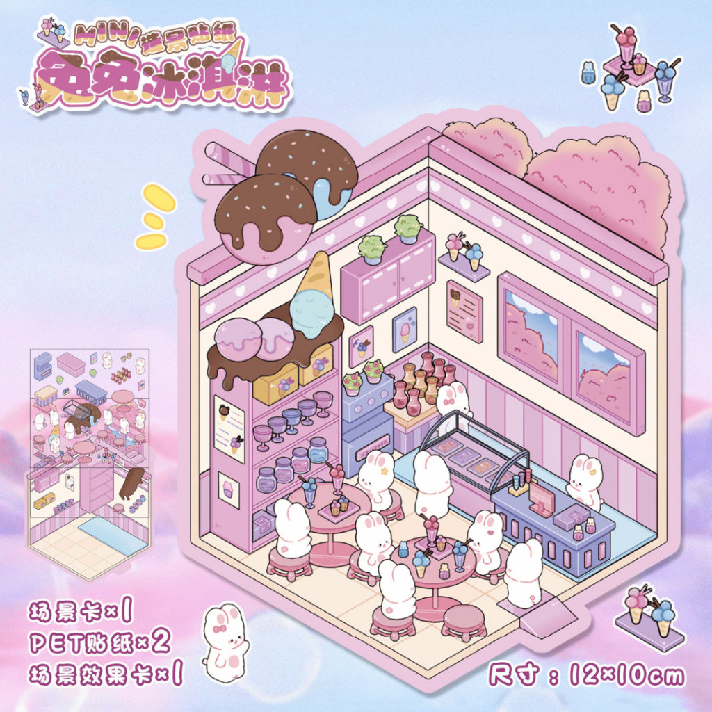 This set features four whimsical shops: the dreamy Bunny Ice Cream Shop, the warm and lively Panda Dessert House, the colourful Sweet Sugar Melon Shop, and the cheerful Milk Cow House. Each scene is packed with cute treats, soft décor, and tiny details that make journaling, scrapbooking, and display crafting even more enjoyable.