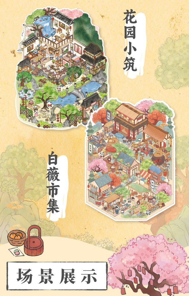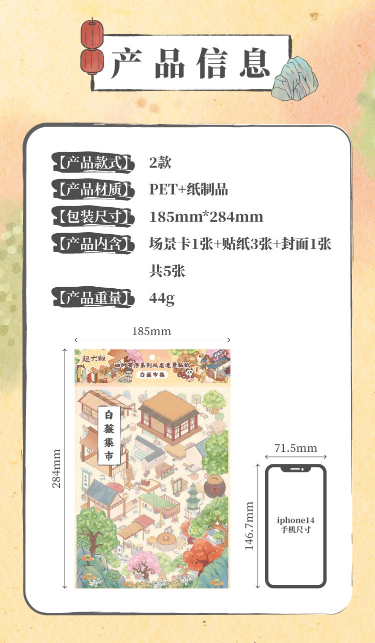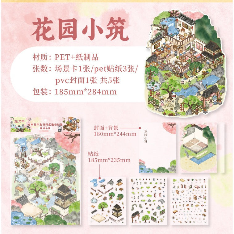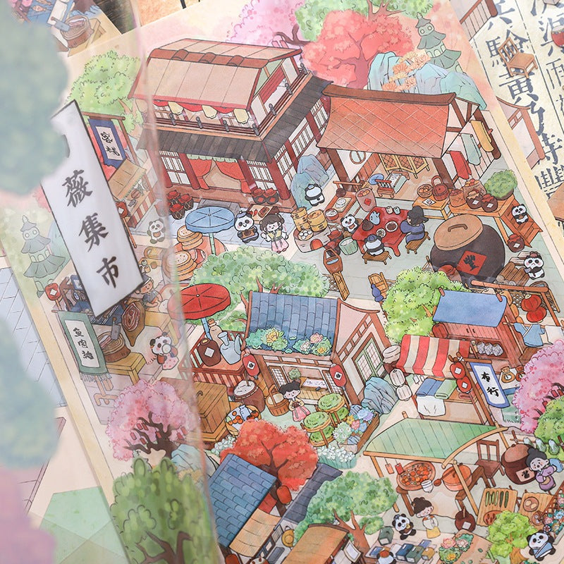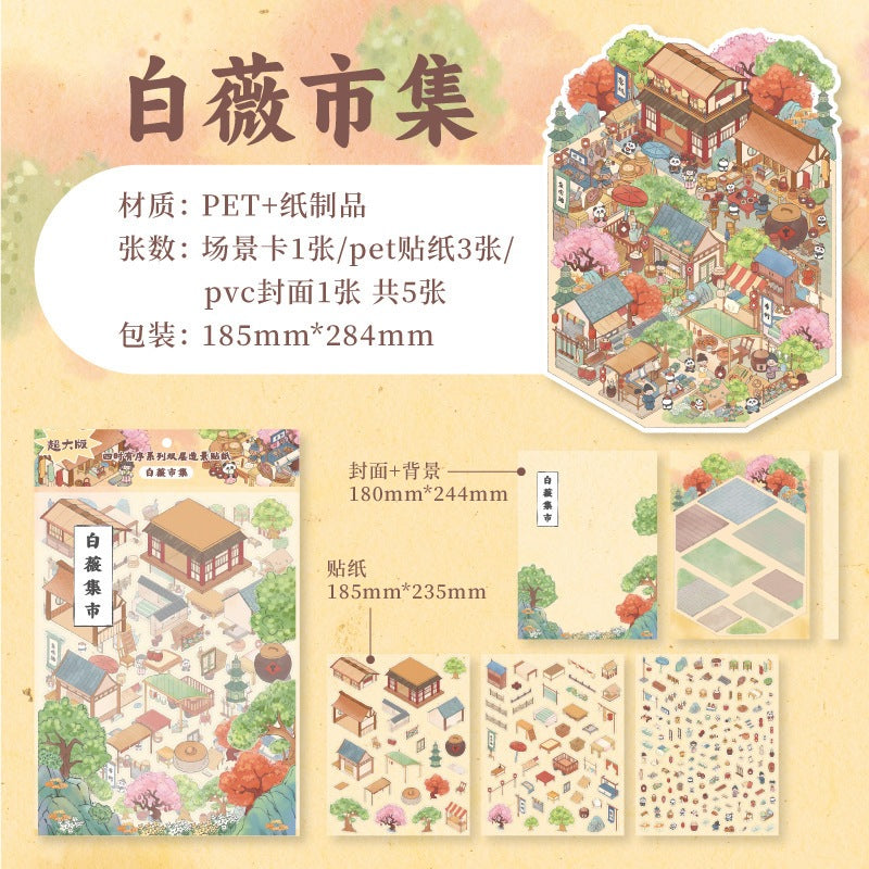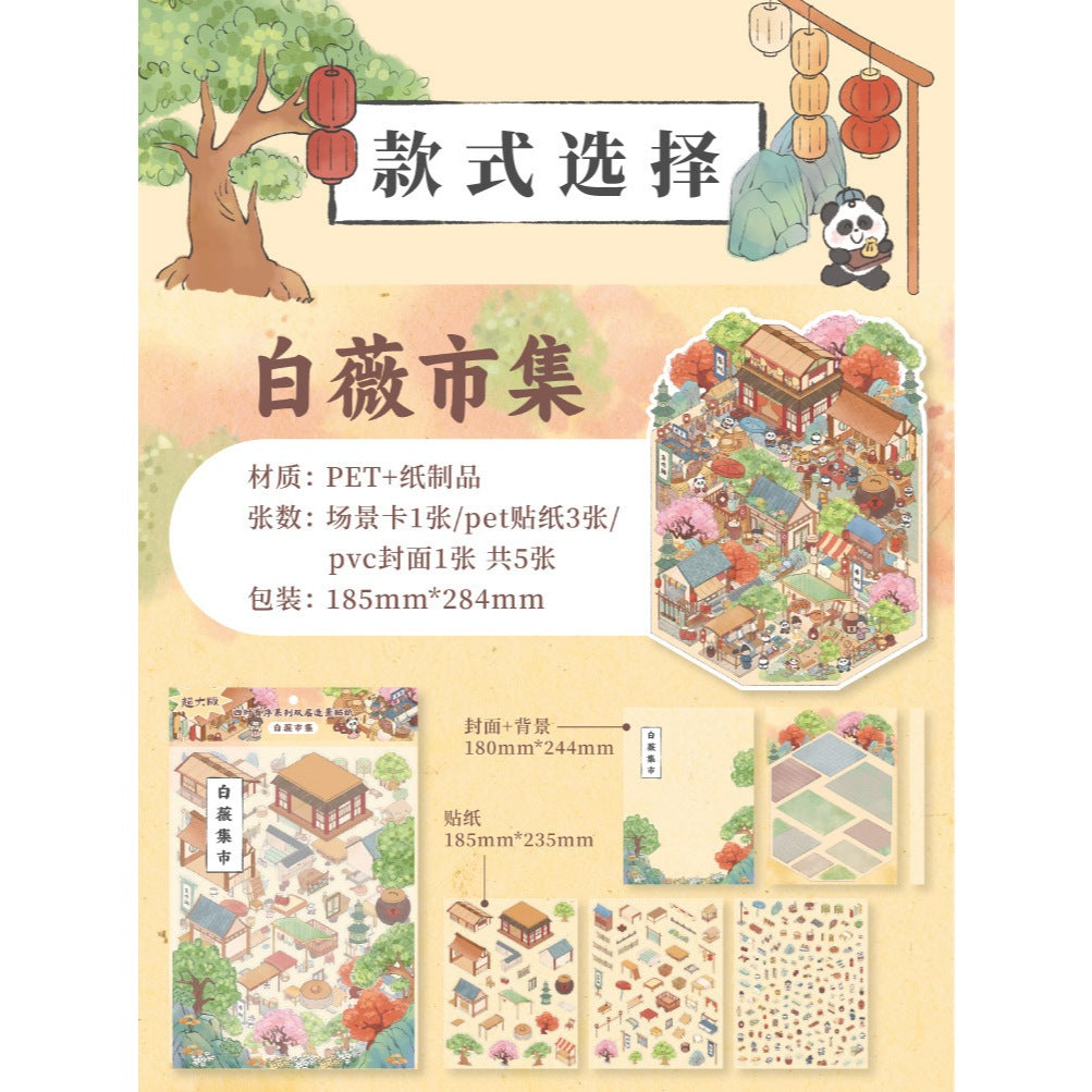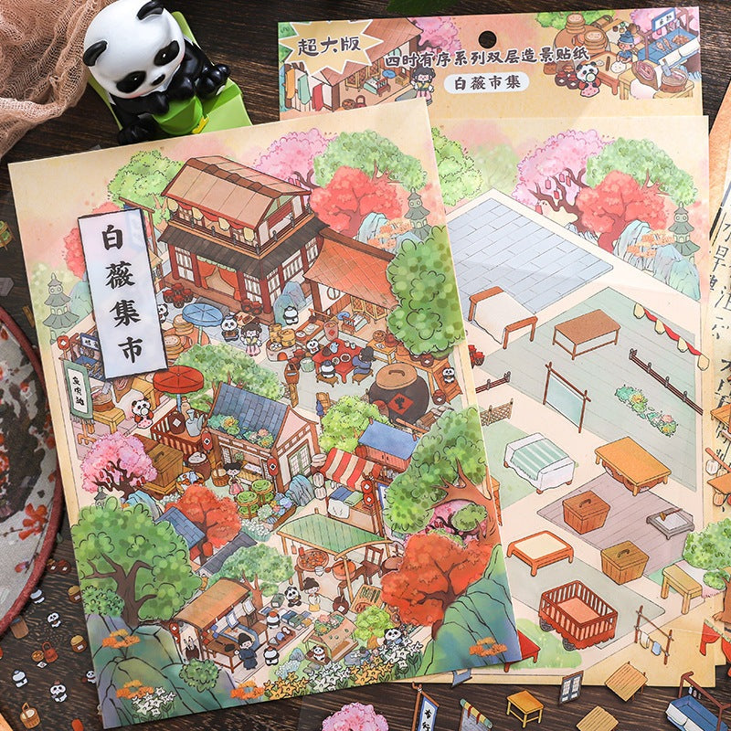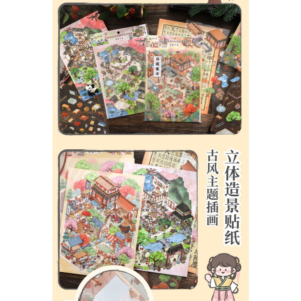 Step into a whimsical world of pandas and ancient charm with these traditional Chinese scene stickers! The White Rose Market bustles with stalls, red lanterns, and springtime trees, while the Garden Courtyard offers a serene waterfall, stone bridges, and tea houses nestled in nature. Each pack is a peaceful escape, perfect for sticker hobbyists, bonding activities, or as a calming puzzle gift for students and teens.