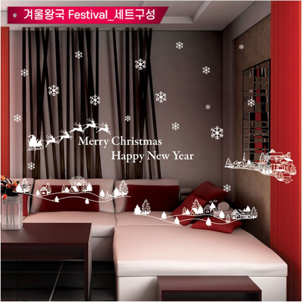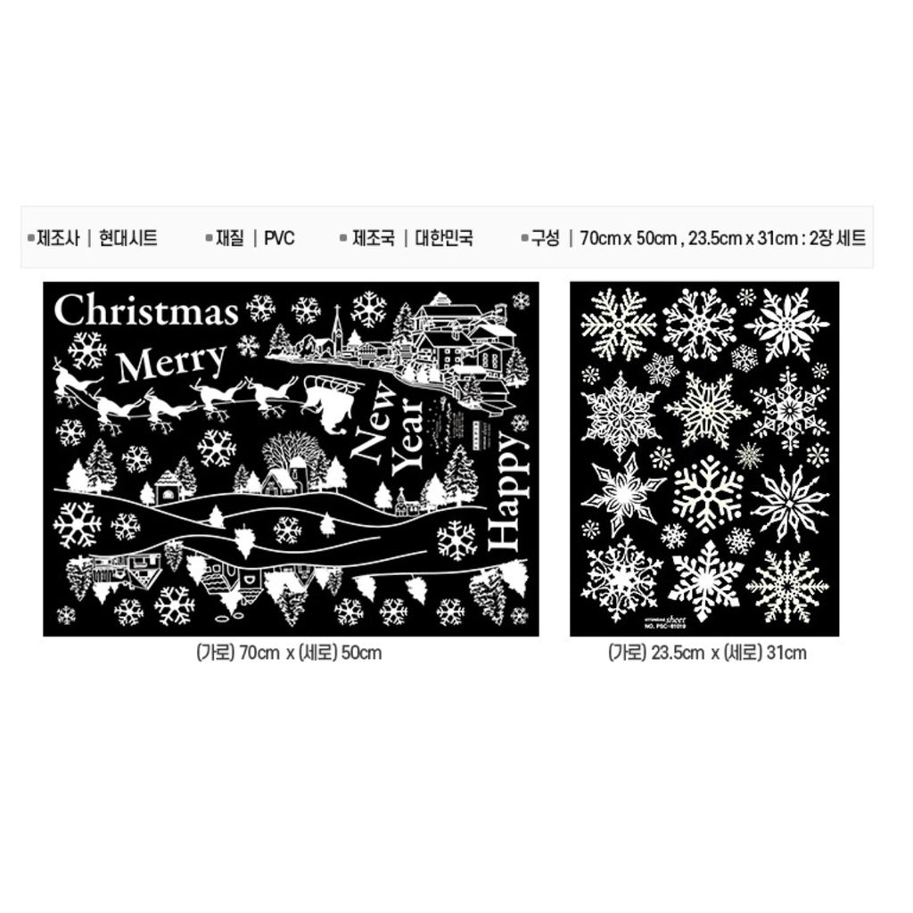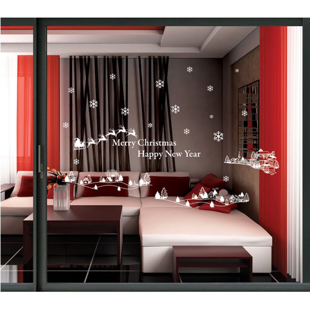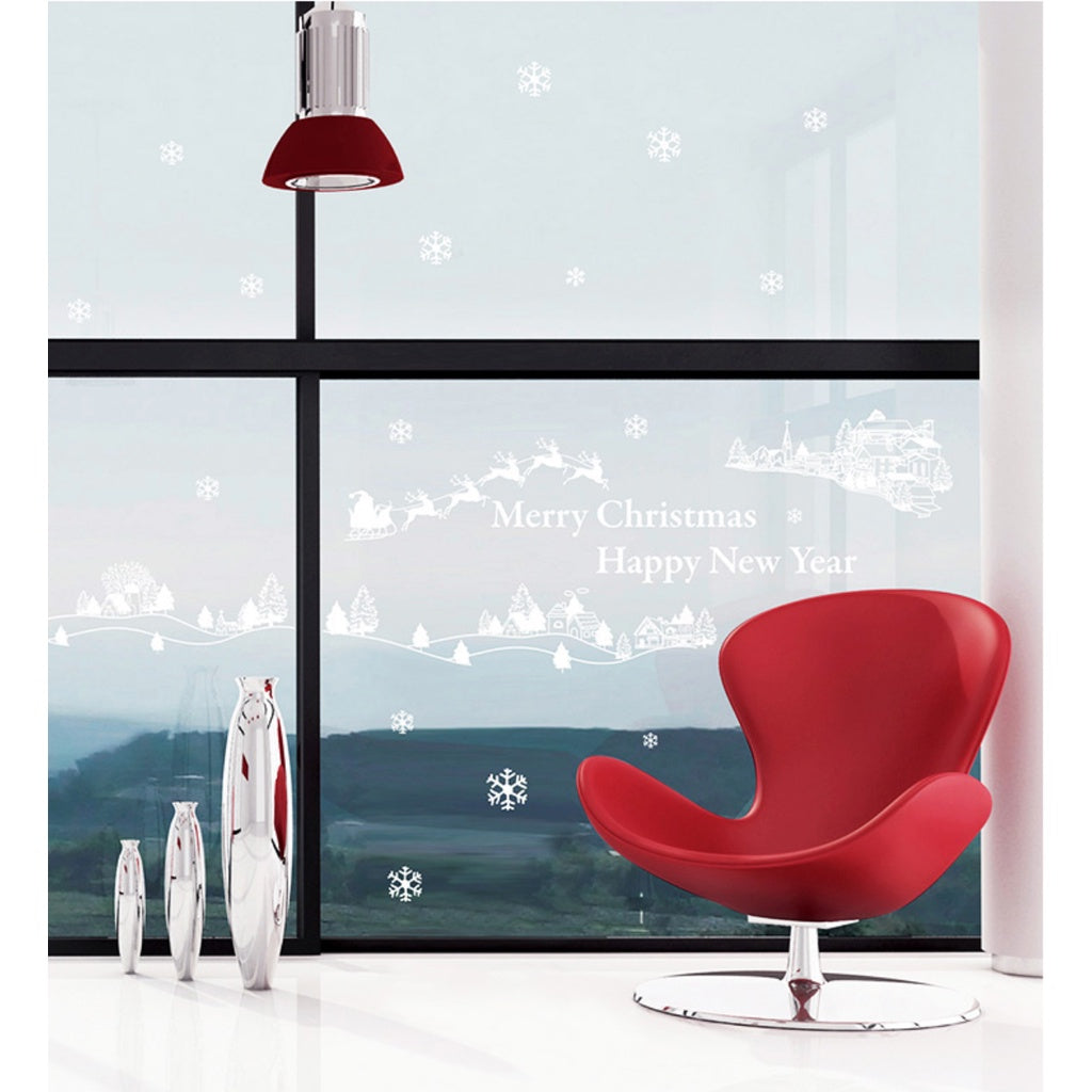 Winter Snow and Santa Sleigh 2pcs set Christmas Wall Sticker